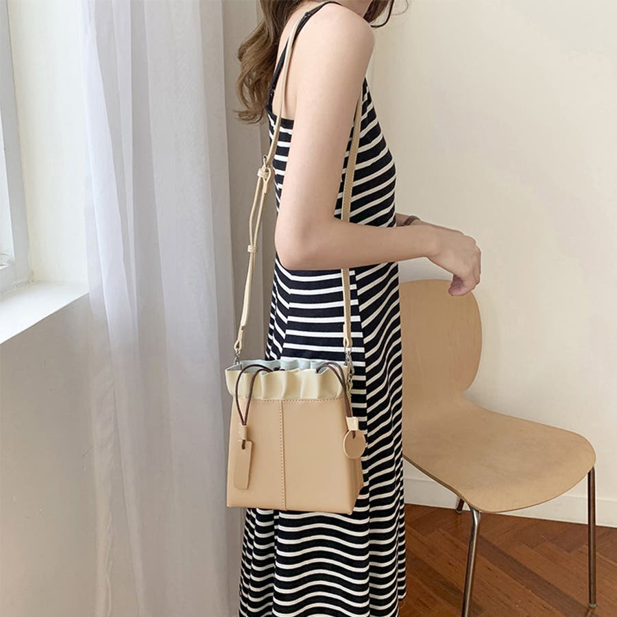 ファスナーではなく、巾着を取り入れて、お洒落さがアップ