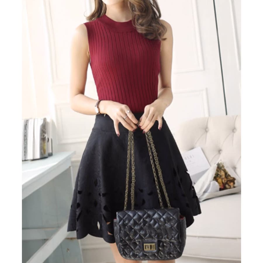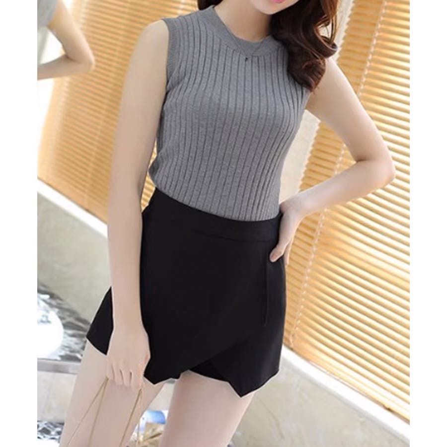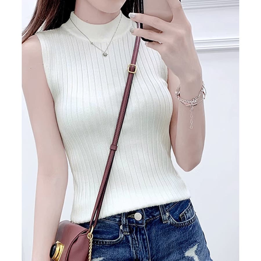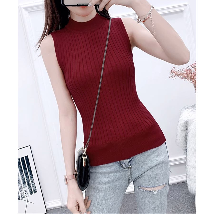 袖なしトップス無地 オフィスカジュアル シンプルニット大人