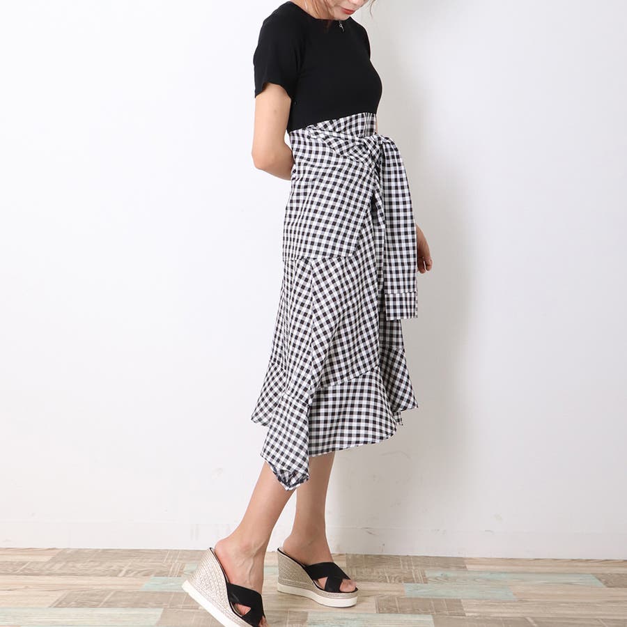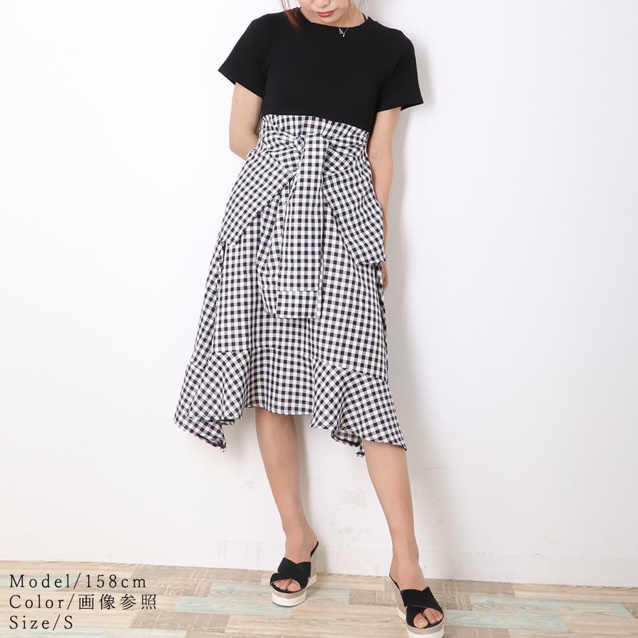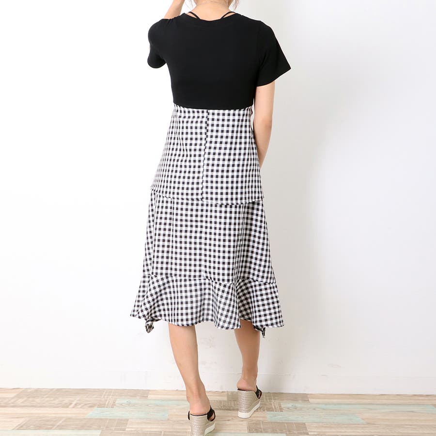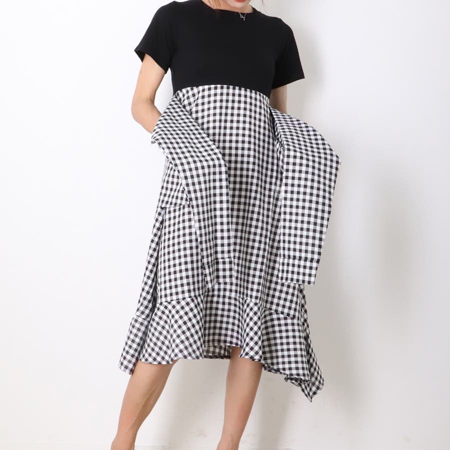 一枚でコーディできるチェック柄ドッキングワンピースです