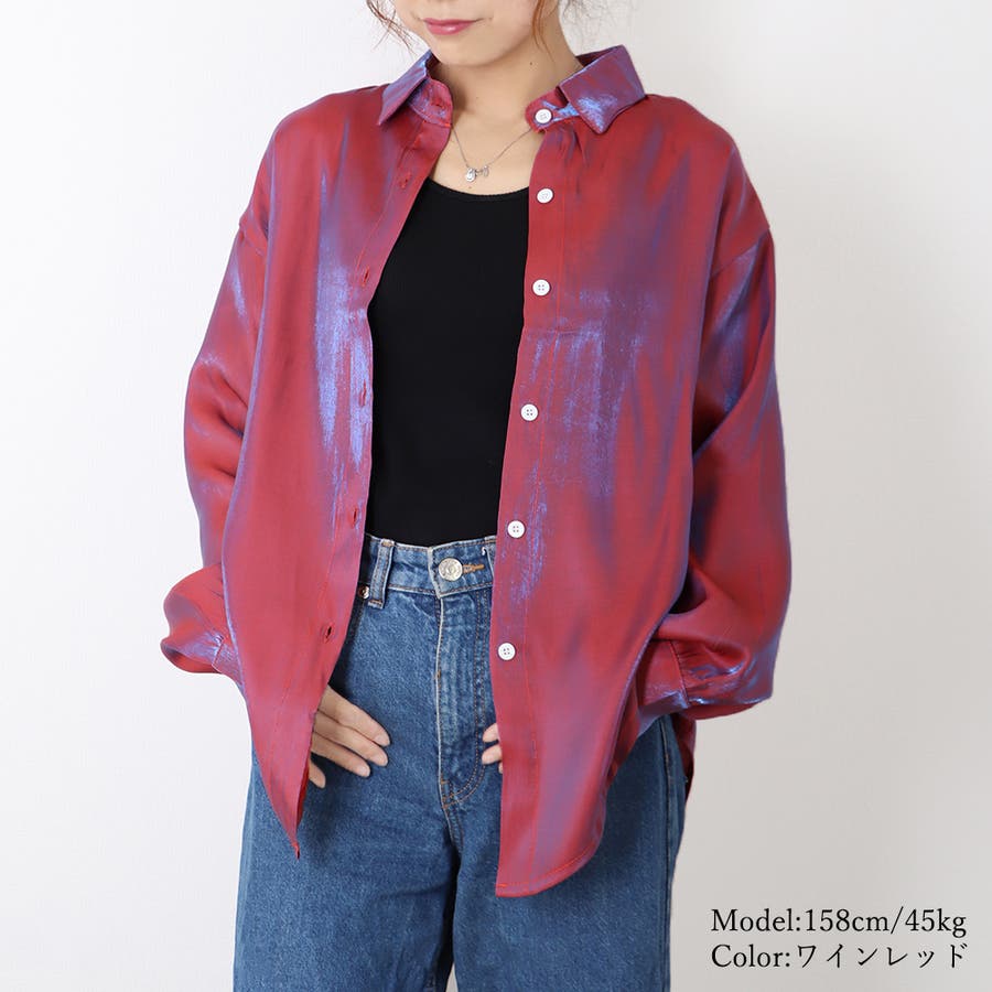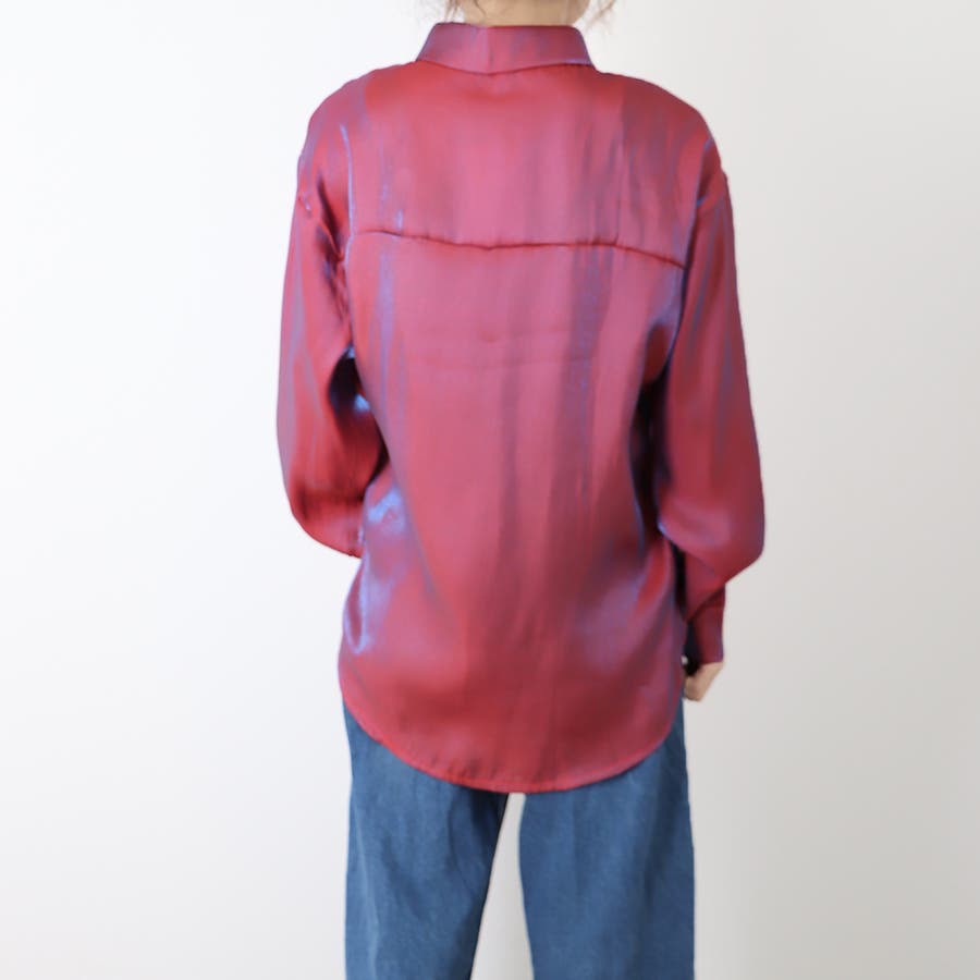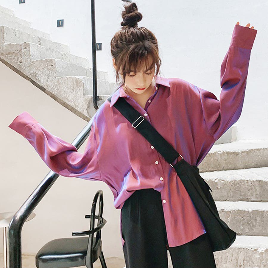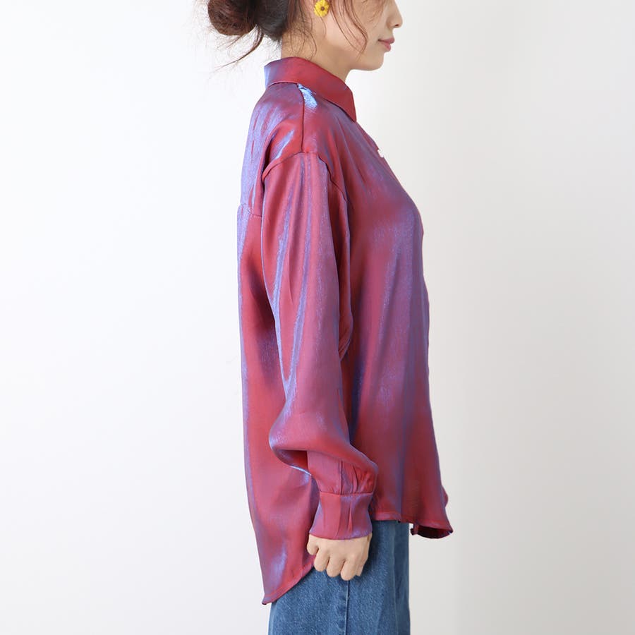 光沢感ととろみのあるサテン風生地を贅沢に使用した「一目惚れブラウス」