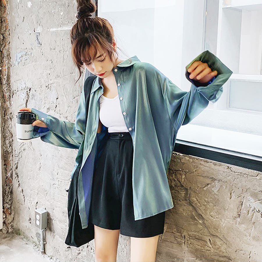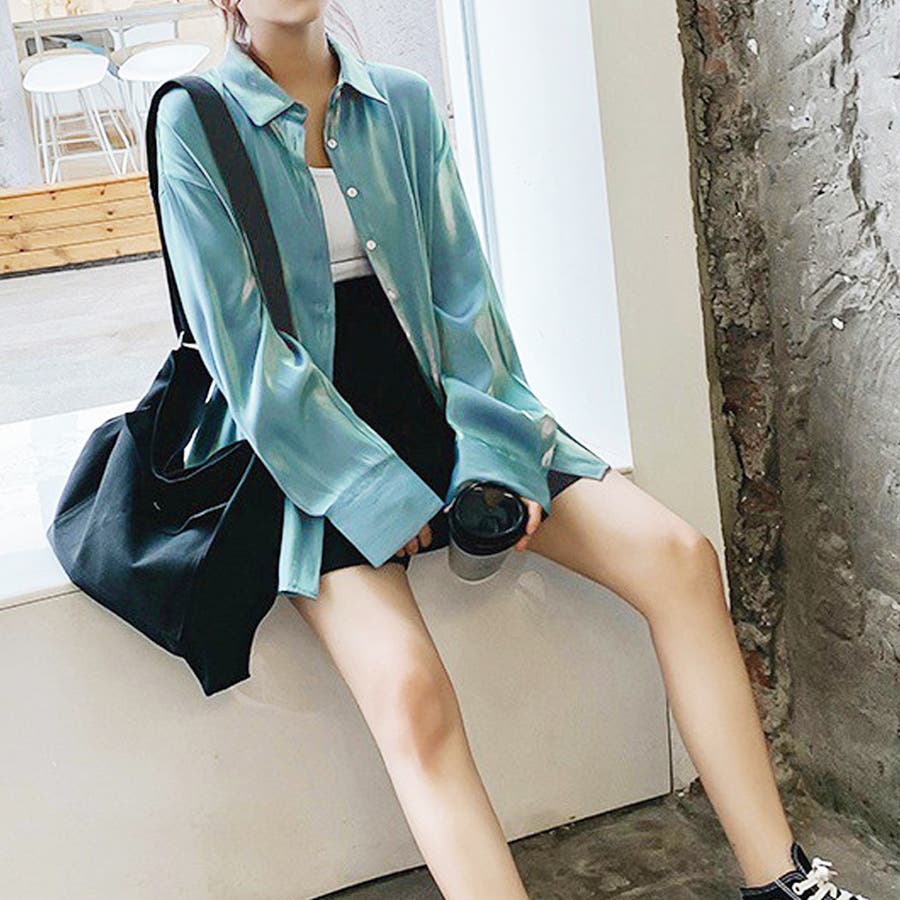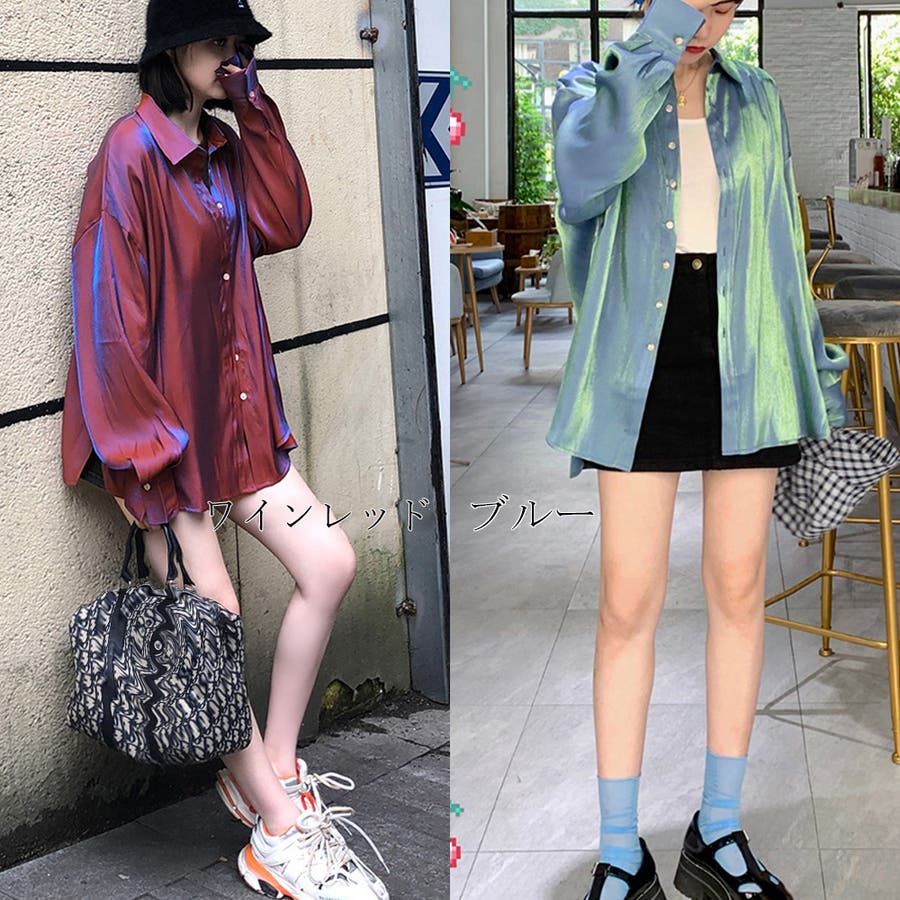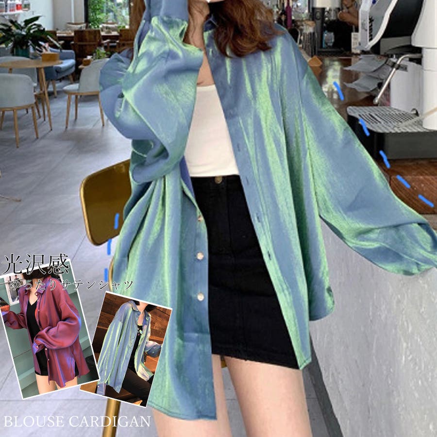 韓国ビッグシャツ 体型カバートップス オーバーサイズ おしゃれロングシャツ 羽織り 長袖カーディガン カラーシャツ着やせ
