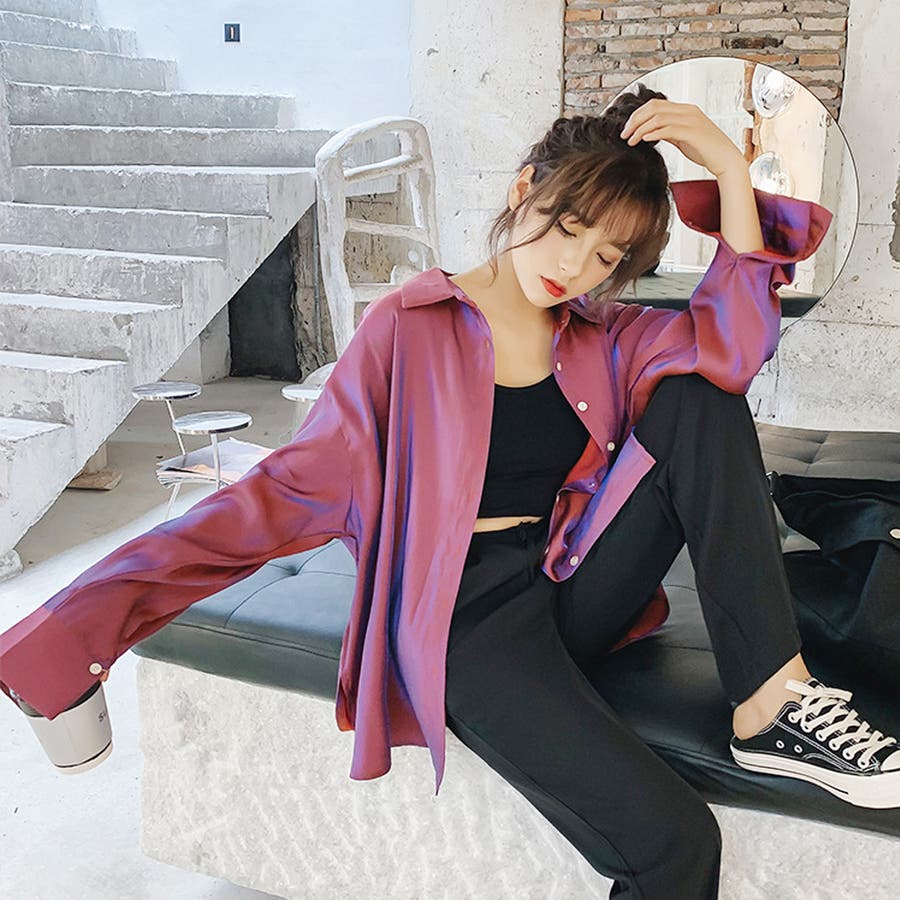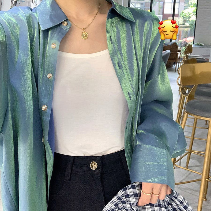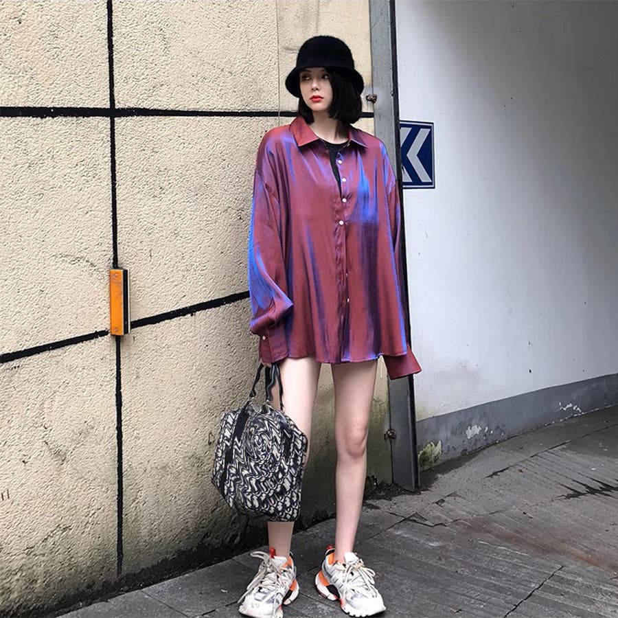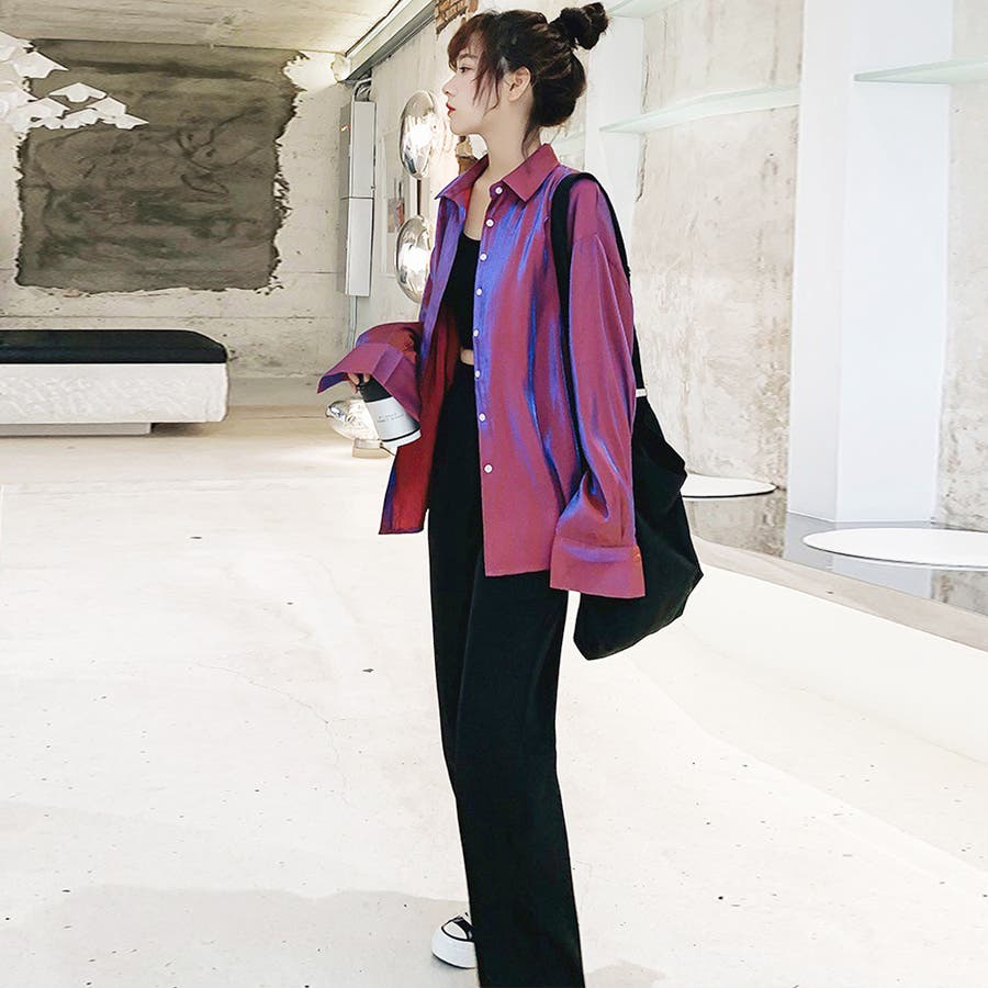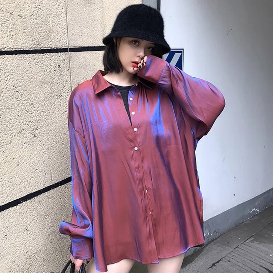 韓国ビッグシャツ 体型カバートップス オーバーサイズ おしゃれロングシャツ 羽織り 長袖カーディガン カラーシャツ着やせ