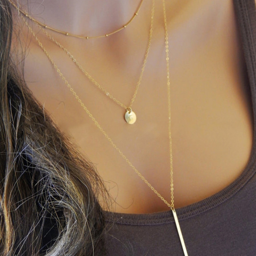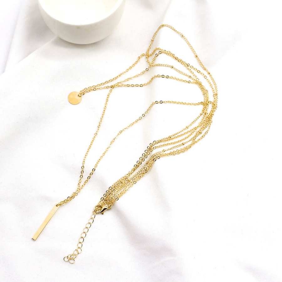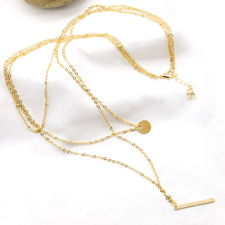 華奢なゴールドのチェーンが女性らしい繊細なデザインの3連チェーンネックレス