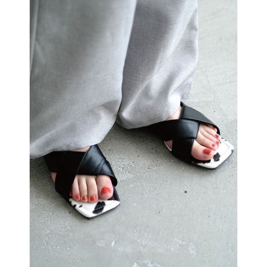 クロスサンダル フラットサンダル オープントゥ
