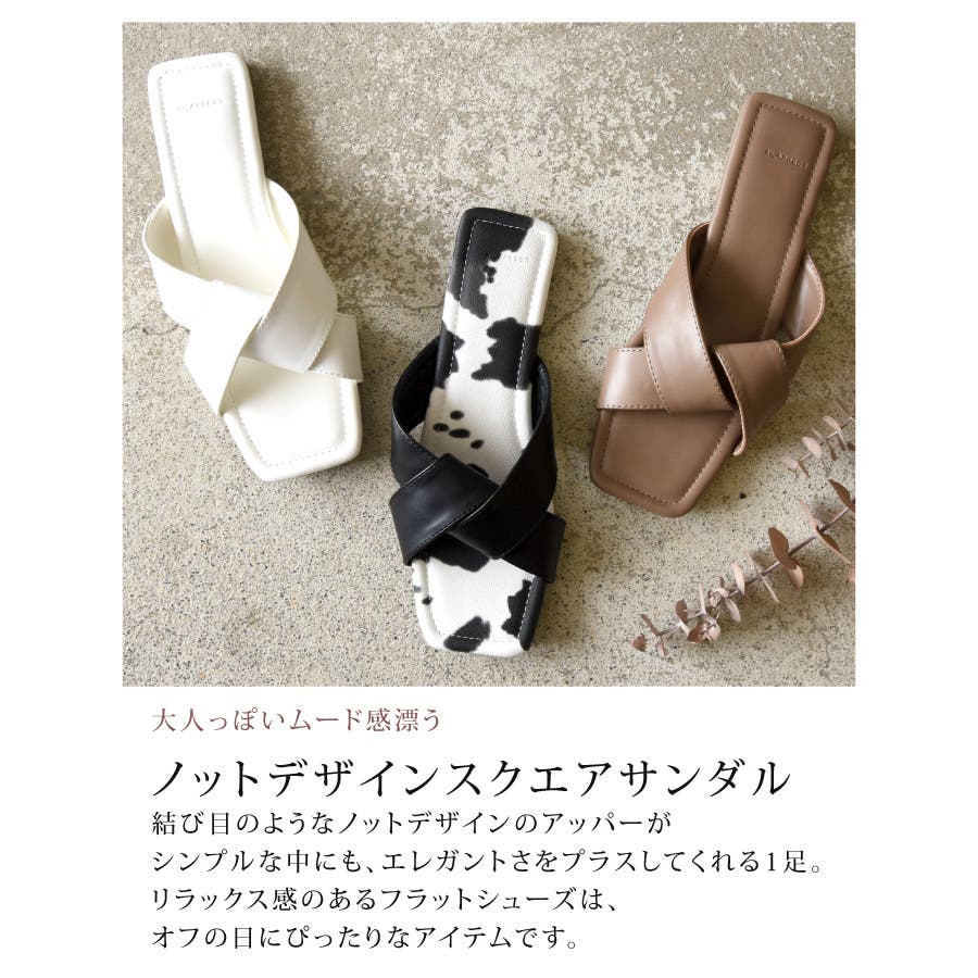 大人っぽいムード感漂うノットデザインスクエアサンダル