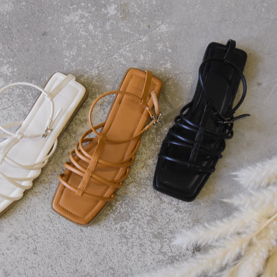 細ストラップサンダル スクエアトゥ スクエアトウ