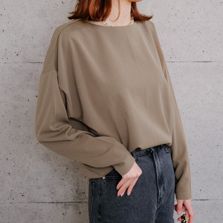 肩が落ちるドロップショルダーと首元をボートネックにすることで
