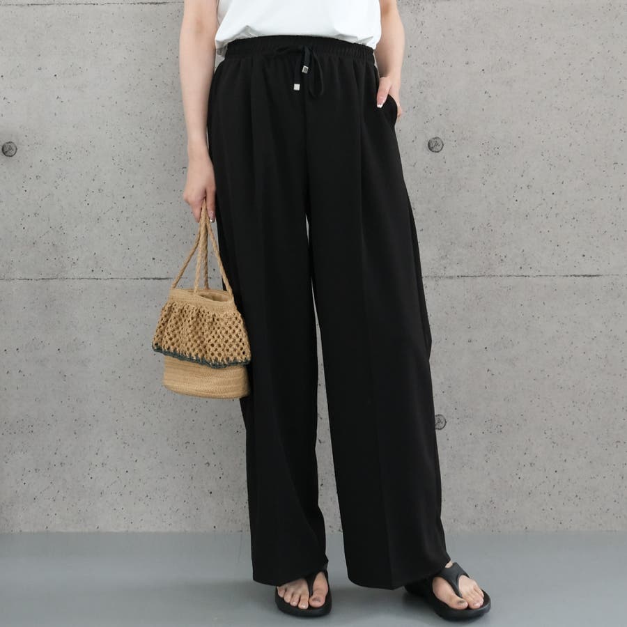 軽やか素材で涼しく着られる梨地タックイージーパンツ