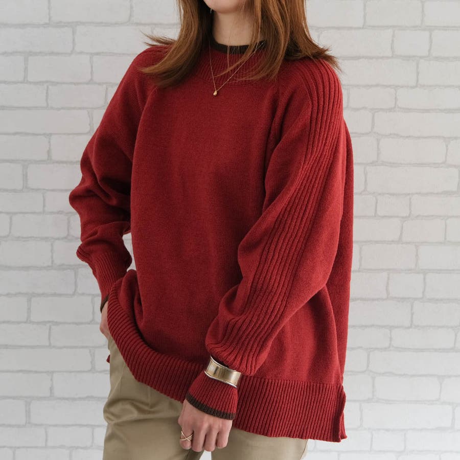 洗えるから毎日着たい、配色ハイネックニットトップス