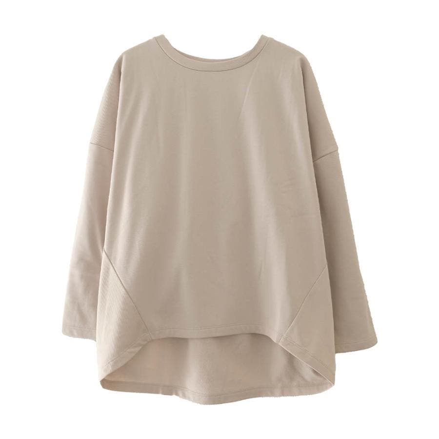 裏起毛コクーンカットソー トップス トップス シャツ ブラウス レディース 春 夏 秋 長袖 体型カバー 二の腕カバー シンプル ベーシック クラシック 薄手 セットアップ可 ルームウェア