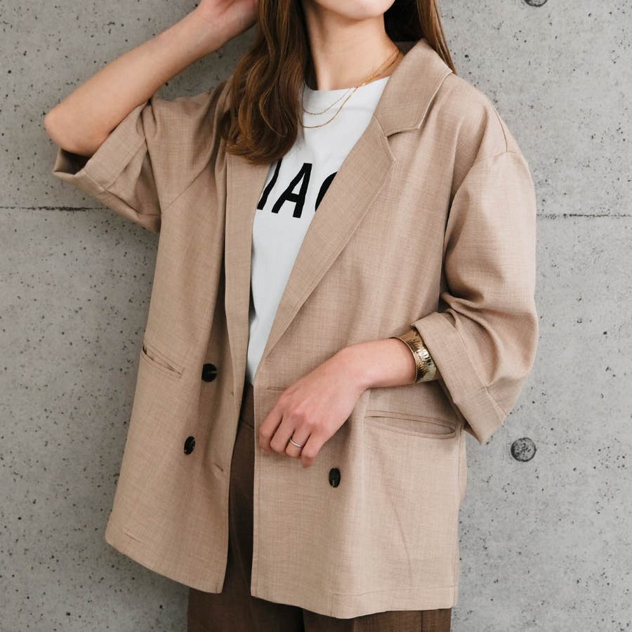 リネンライクダブルブレスト半袖テーラードジャケット レディース 春 夏 秋 ジャケット カジュアル シンプル ポケット ベーシック 羽織り 重ね着 レイヤード 体型カバー ゆったり 大人女子 高見え エレガント ビジネス オフィスウェア オフィスカジュアル 通勤 上品 清楚 入園式 卒園式 入学式 卒業式 レイヤード
