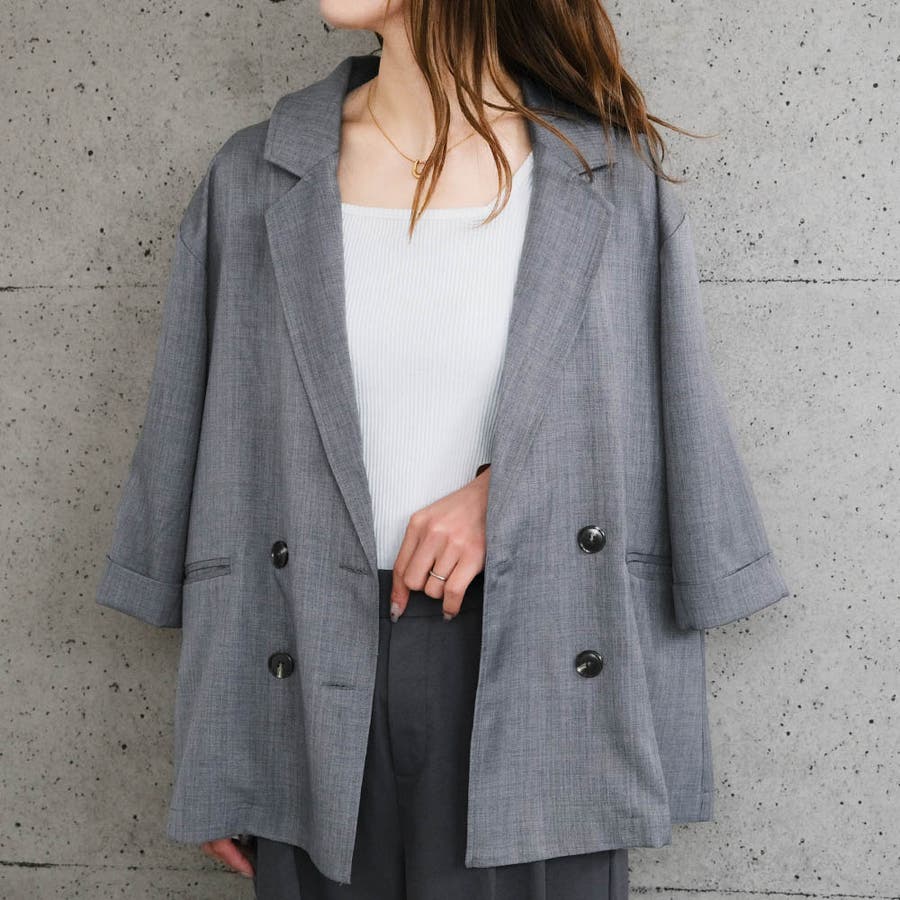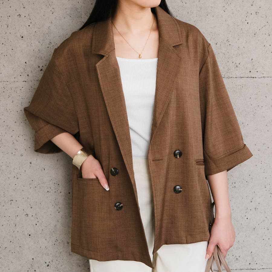 軽くさらっとした肌触りが着心地の良いリネンライクダブルブレスト半袖テーラードジャケット