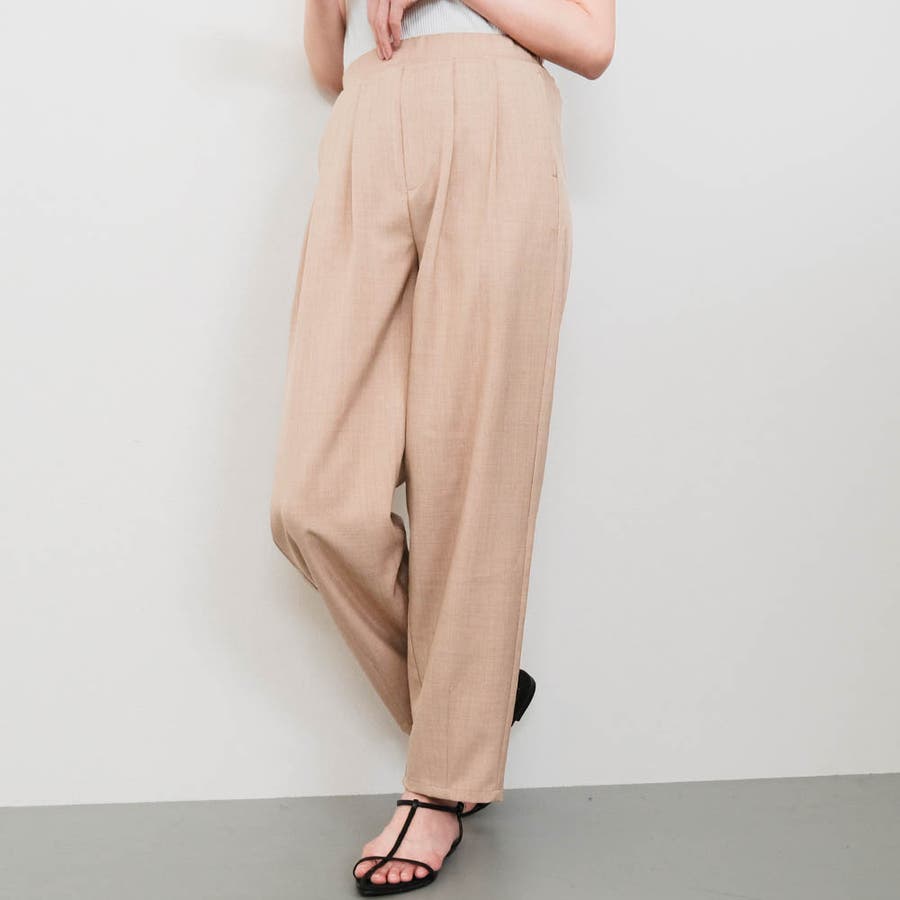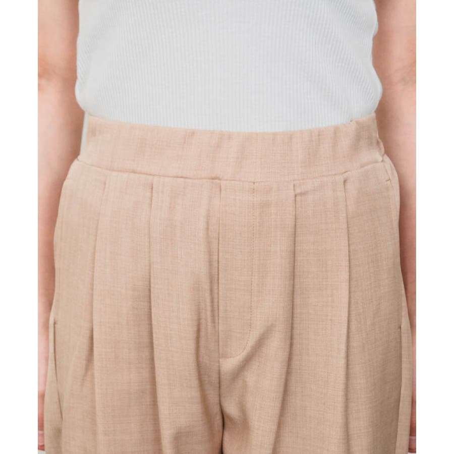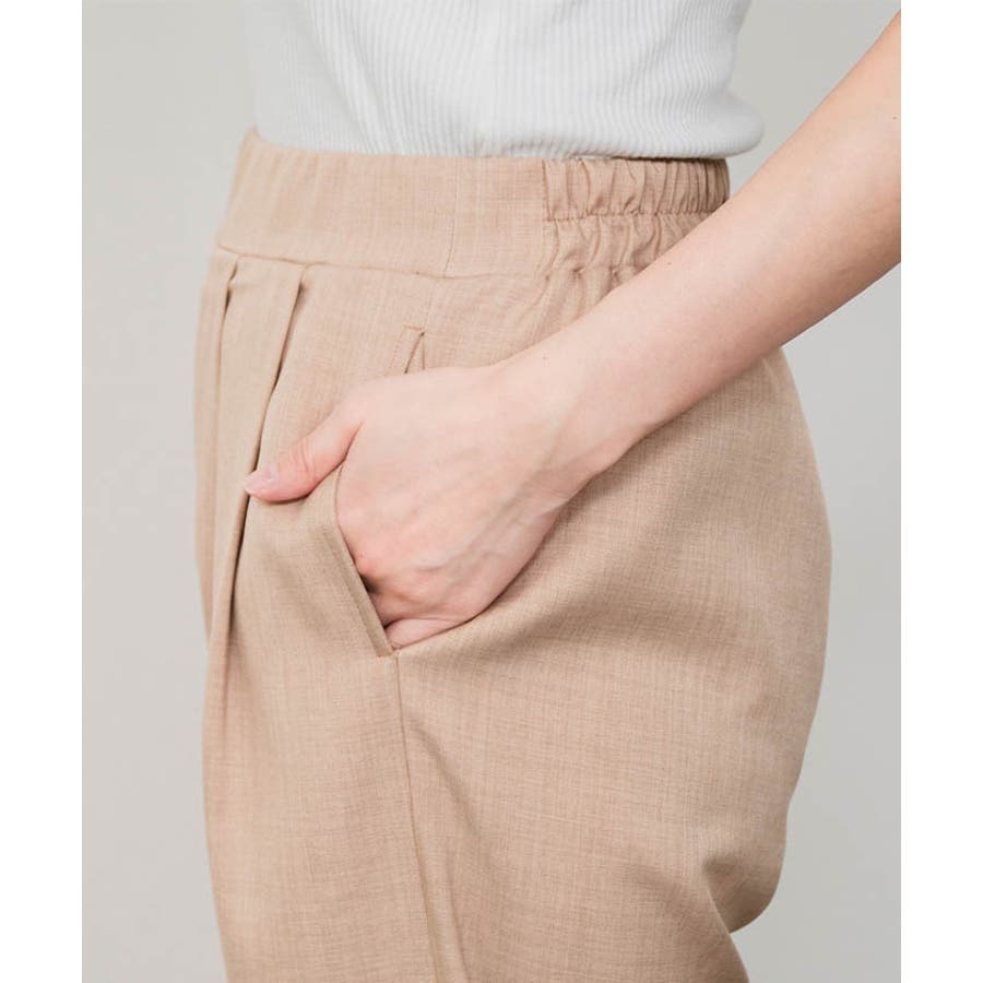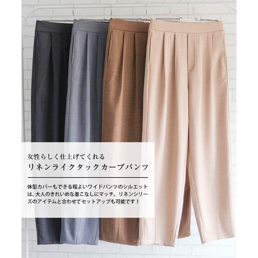 楽な穿き心地なのに女性らしく仕上げてくれるリネンライクタックカーブパンツ