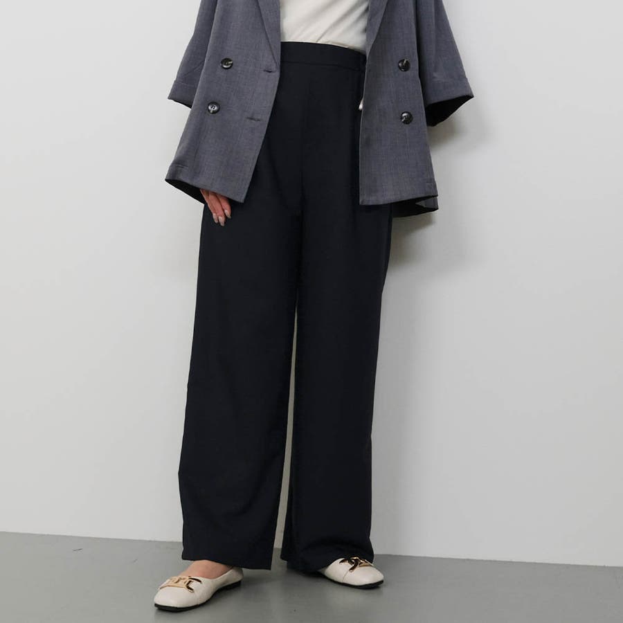 体型カバーもできる程よいワイドパンツのシルエットは、大人のきれいめな着こなしにマッチ。