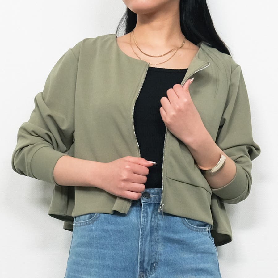 梨地バックフリルライトアウター アウター ジップアップパーカー レディース M L 春 秋 長袖 フリルパーカー 羽織り パーカー 薄手 おしゃれ コンパクト カジュアル ライトアウター 無地
