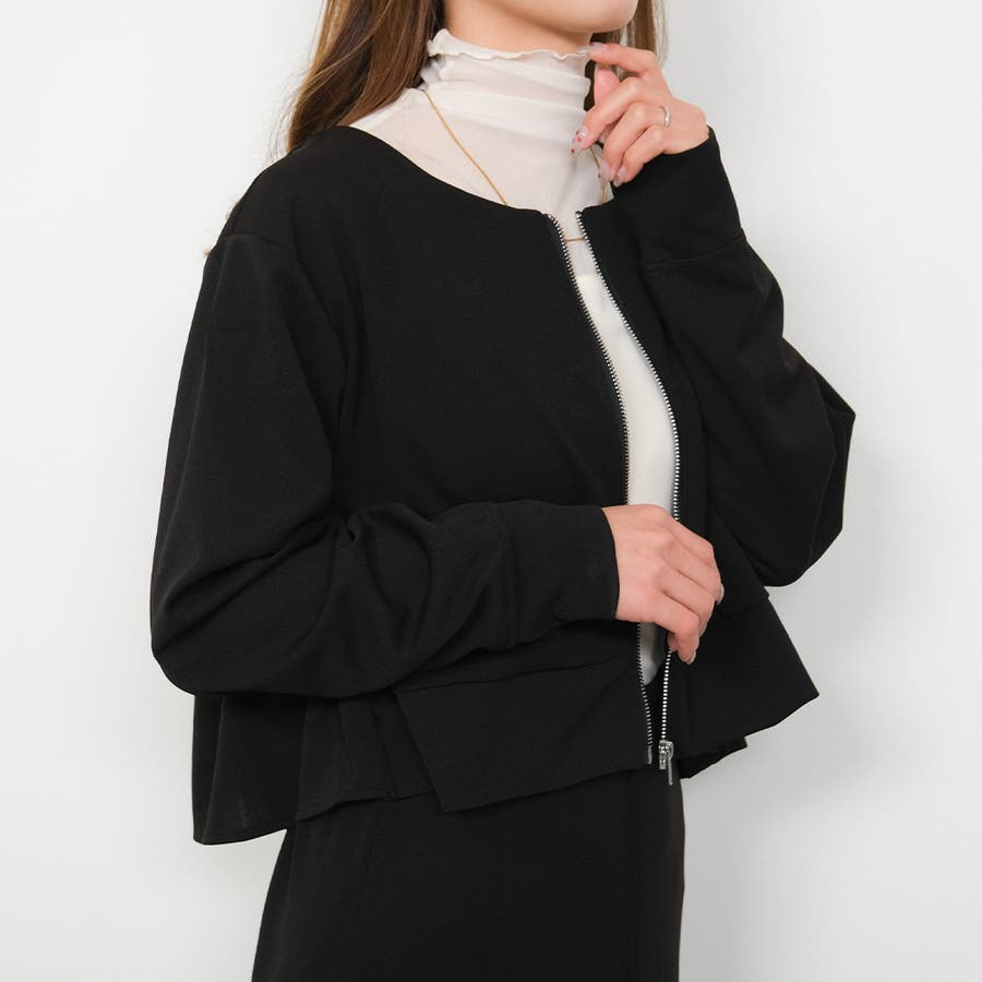 落ち感のある梨地素材を使用したバックフリルライトアウター
