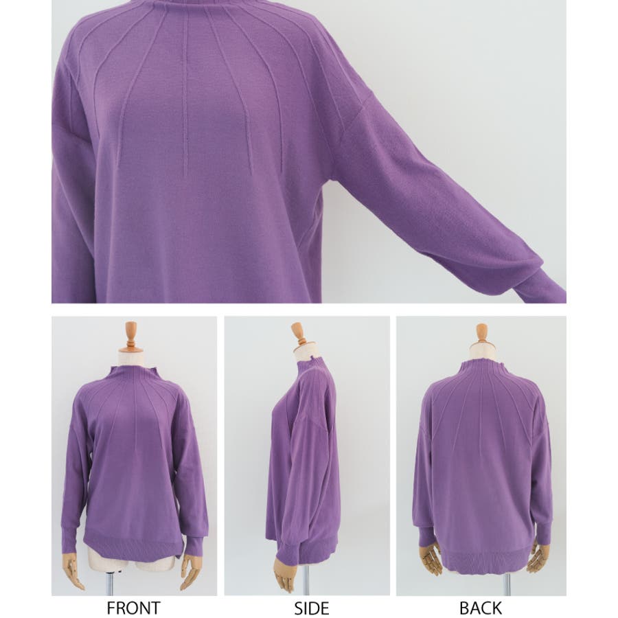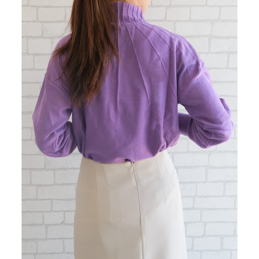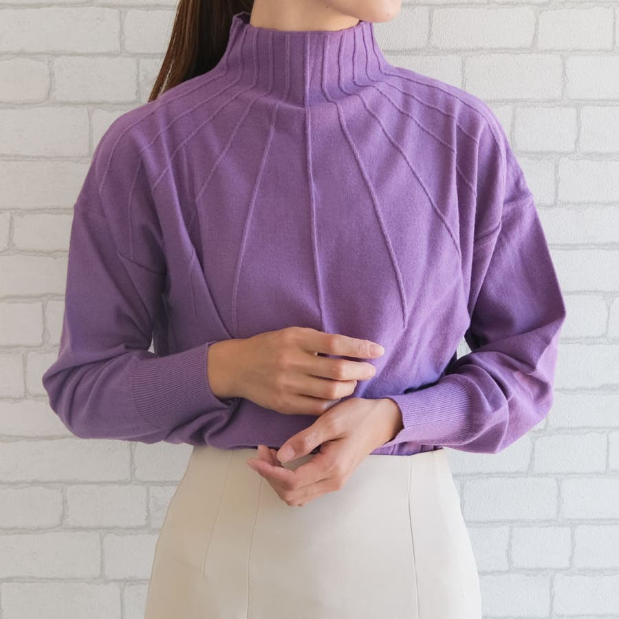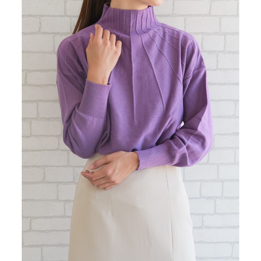 裏天竺部分ピンタックニットトップス ニット トップス レディース 春 秋 冬 長袖 M 袖コンシャス ボリュームスリーブ ボリューム袖 ハイネック 二の腕カバー シンプル セーター ゆったり リラックス 華奢見せ 細見え きれいめ フェミニン 上品 清楚 くすみカラー プリーツ クラシカル ビジネス オフィスウェア オフィスカジュアル エレガント チクチクしない