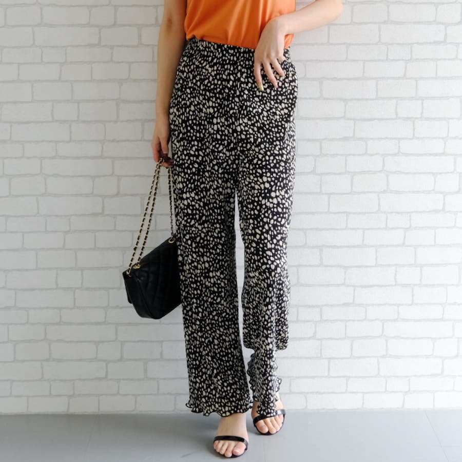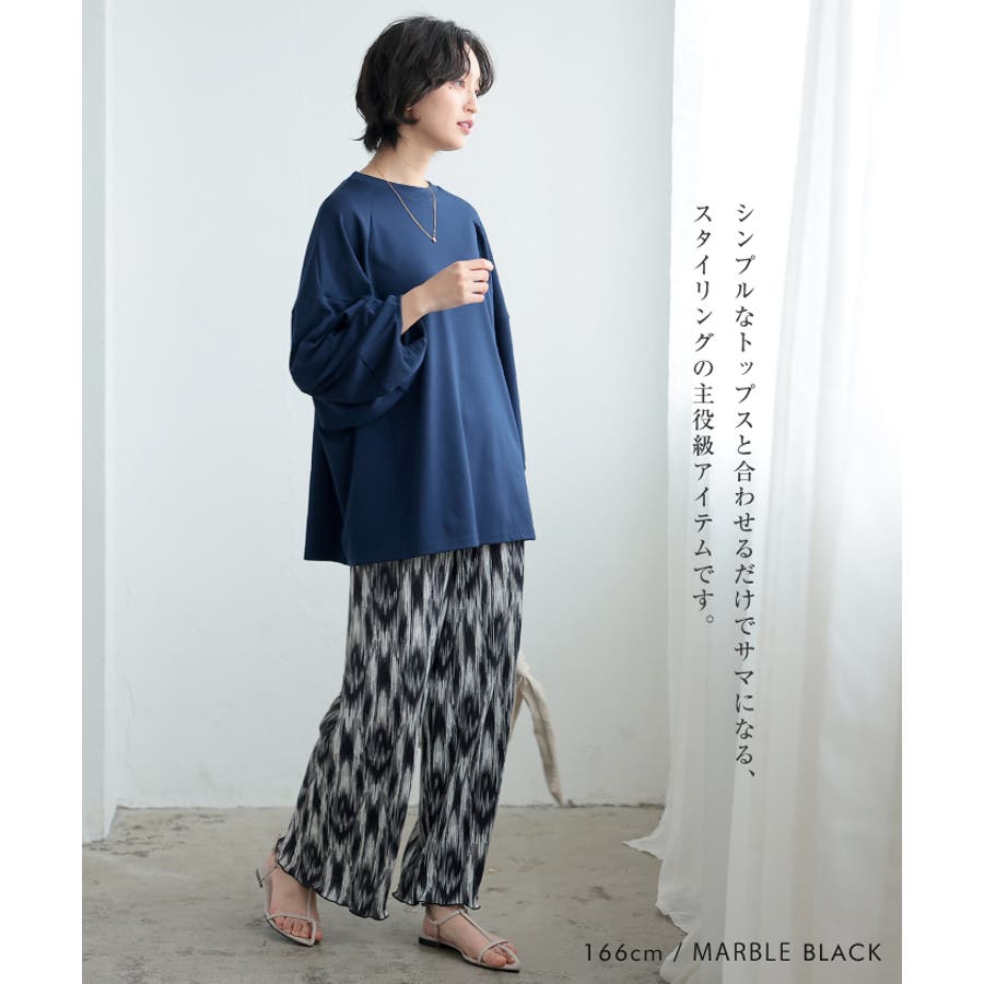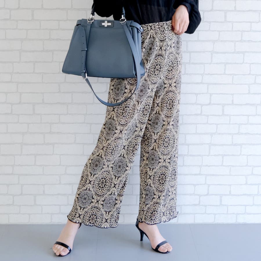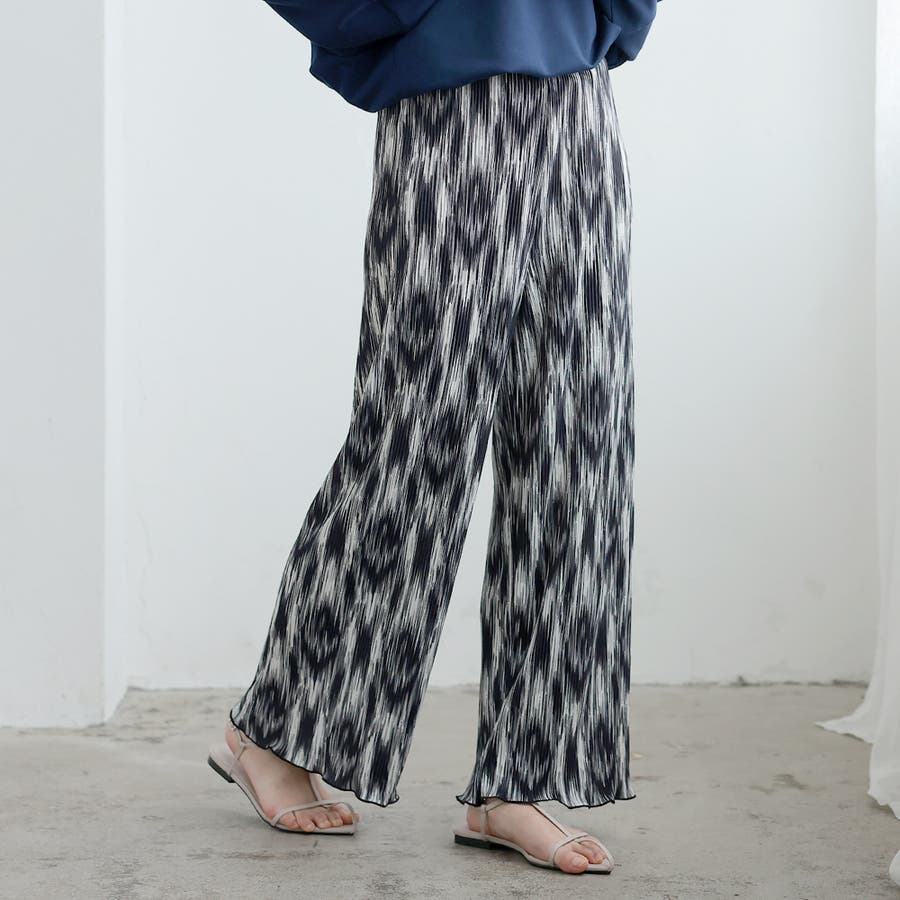 柔らかな履き心地で楽ちん、プリントプリーツパンツ