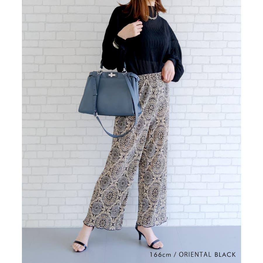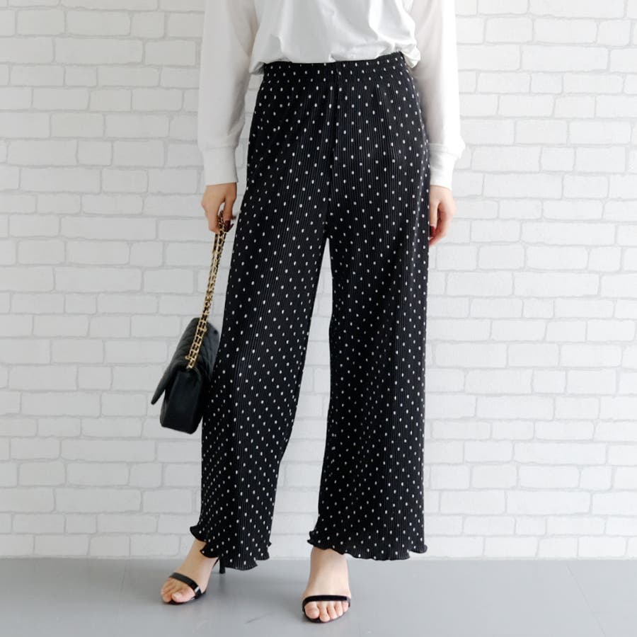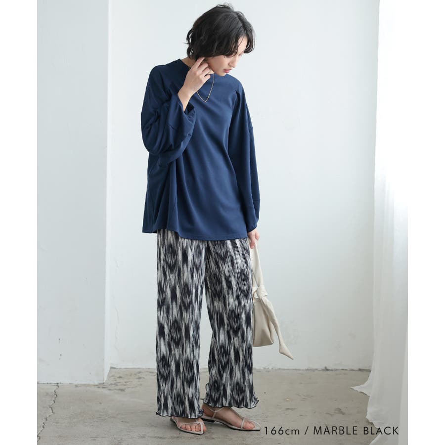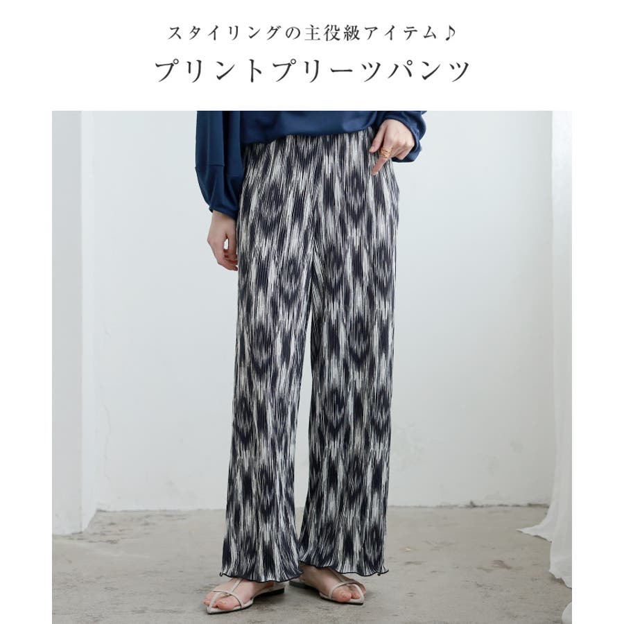 柔らかな履き心地で楽ちん、プリントプリーツパンツ