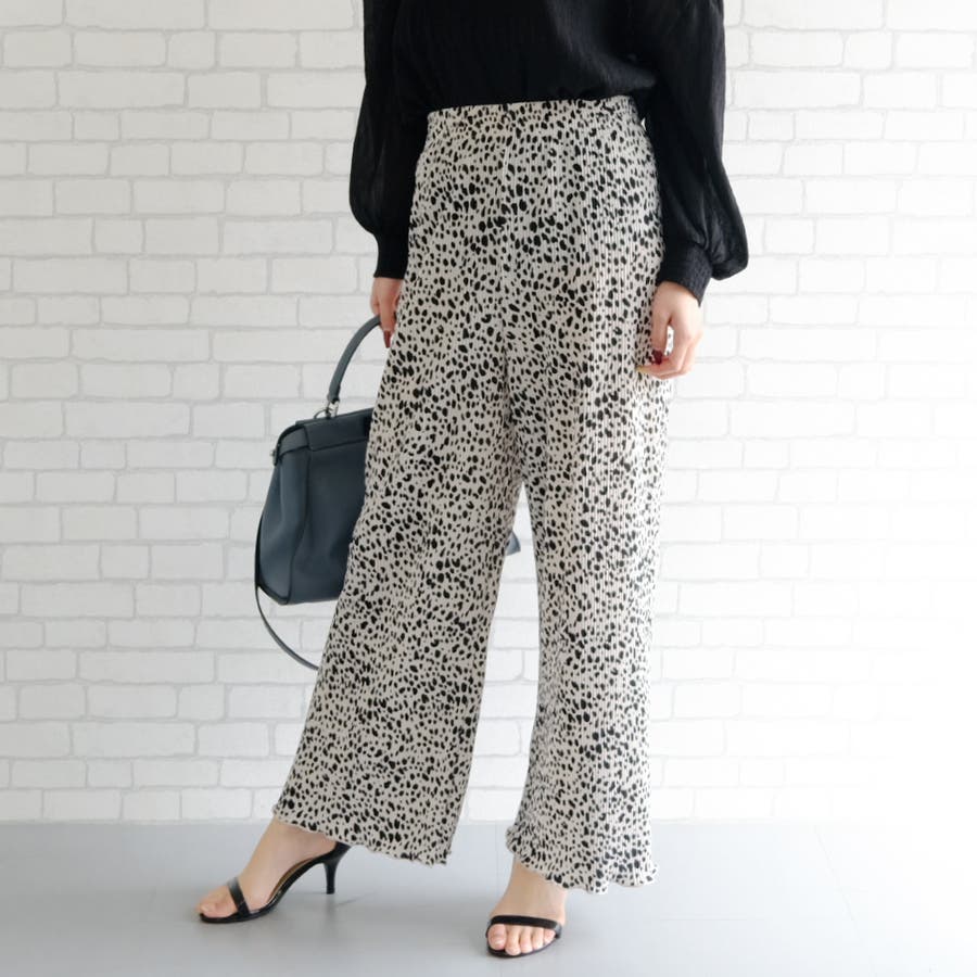プリントプリーツパンツ レディース 花柄 チェック柄 春 夏 秋 M L ボトムス パンツ プリーツパンツ ロング丈 ウエストゴム イージーパンツ ガウチョパンツ スカンツ 美ライン きれいめ フェミニン 大人女子 大人可愛い 大人 上品 清楚 無地 体型カバー ストレスフリー ルームウエア ワンマイルウエア 部屋着 リラックスパンツ イージーパンツ リラックス リラクシング 楽ちん レイヤードアニマル柄 ダルメシアン柄