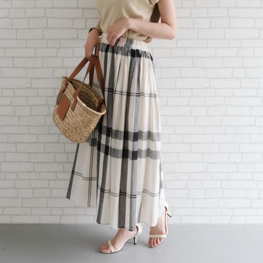 シンプルなトップスと合わせてスカートを主役にしたコーディネートがおすすめ。