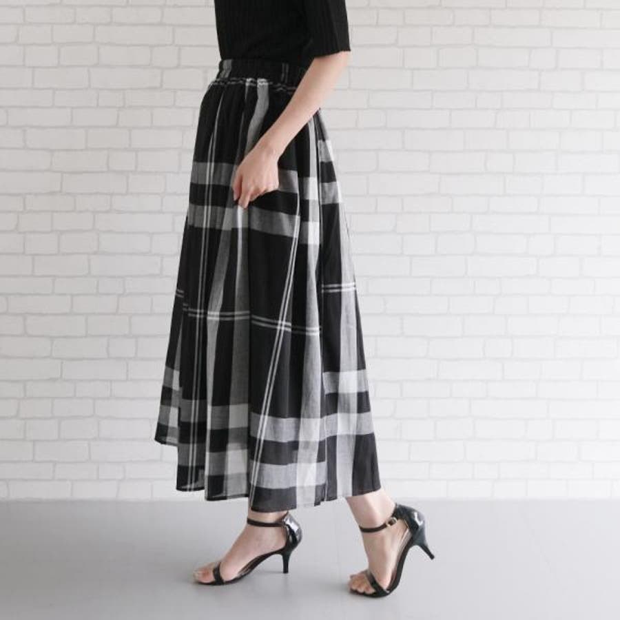 薄手で軽やかな着心地のチェックガーゼギャザースカート