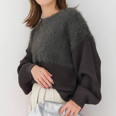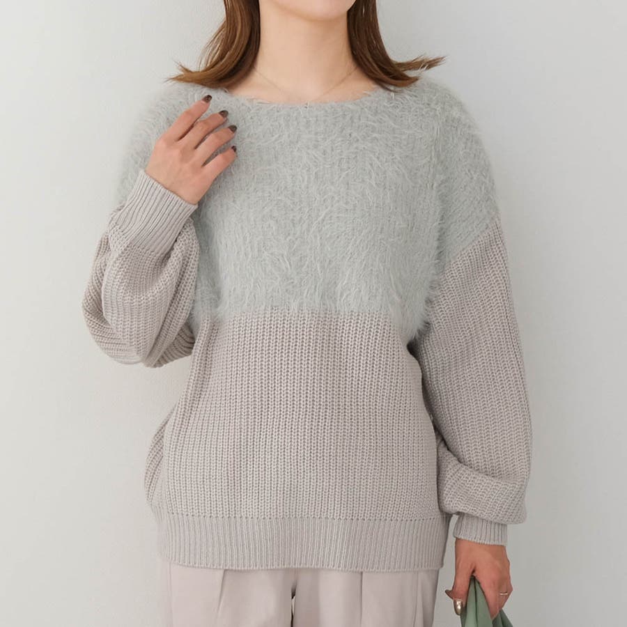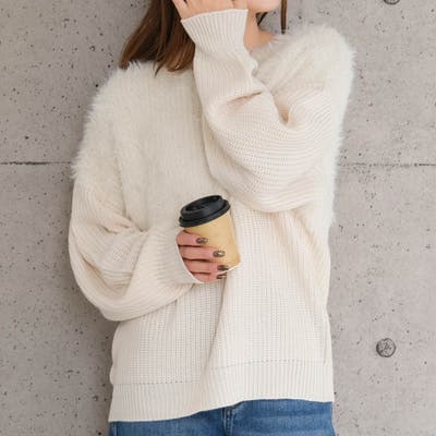ふんわりシャギーとざっくりした畦編みのニットトップス