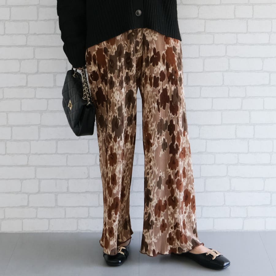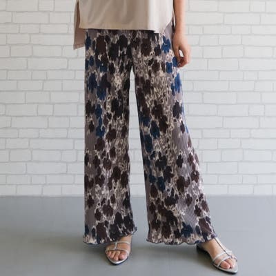 柄プリーツパンツ レディース 花柄 チェック柄 春 夏 秋 M L ボトムス パンツ プリーツパンツ ロング丈 ウエストゴム イージーパンツ ガウチョパンツ スカンツ 美ライン きれいめ フェミニン 大人女子 大人可愛い 大人 上品 清楚 無地 体型カバー ストレスフリー ルームウエア ワンマイルウエア 部屋着 リラックスパンツ イージーパンツ リラックス リラクシング 楽ちん レイヤード