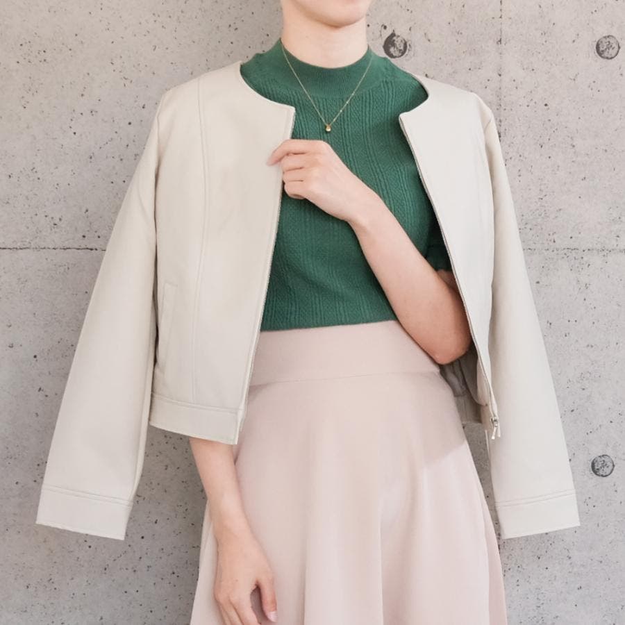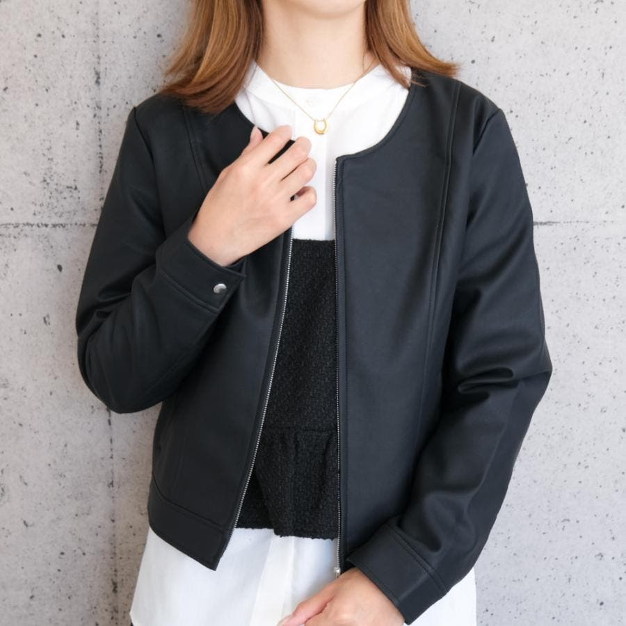 エコレザーノーカラージャケット
