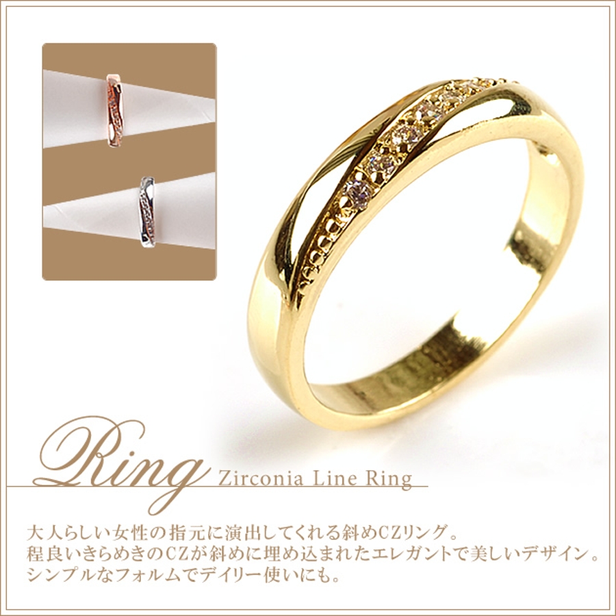 大人らしい女性の指元に演出してくれる斜めCZリング♪