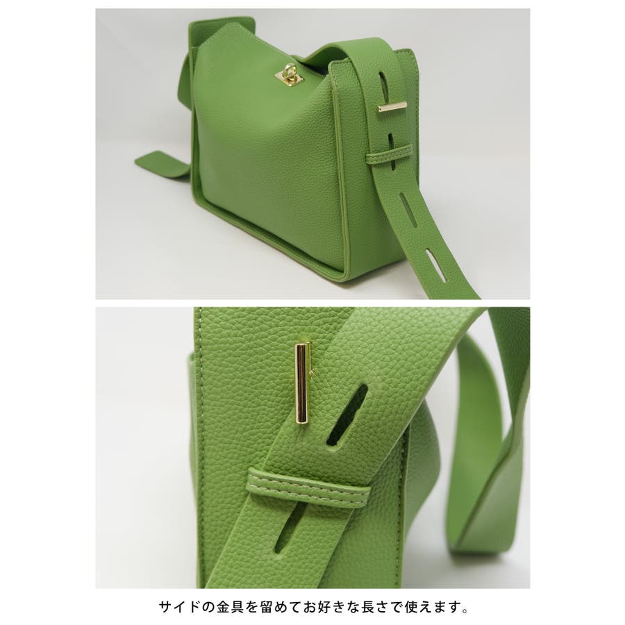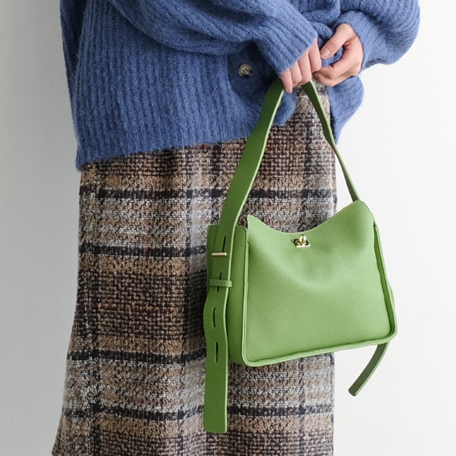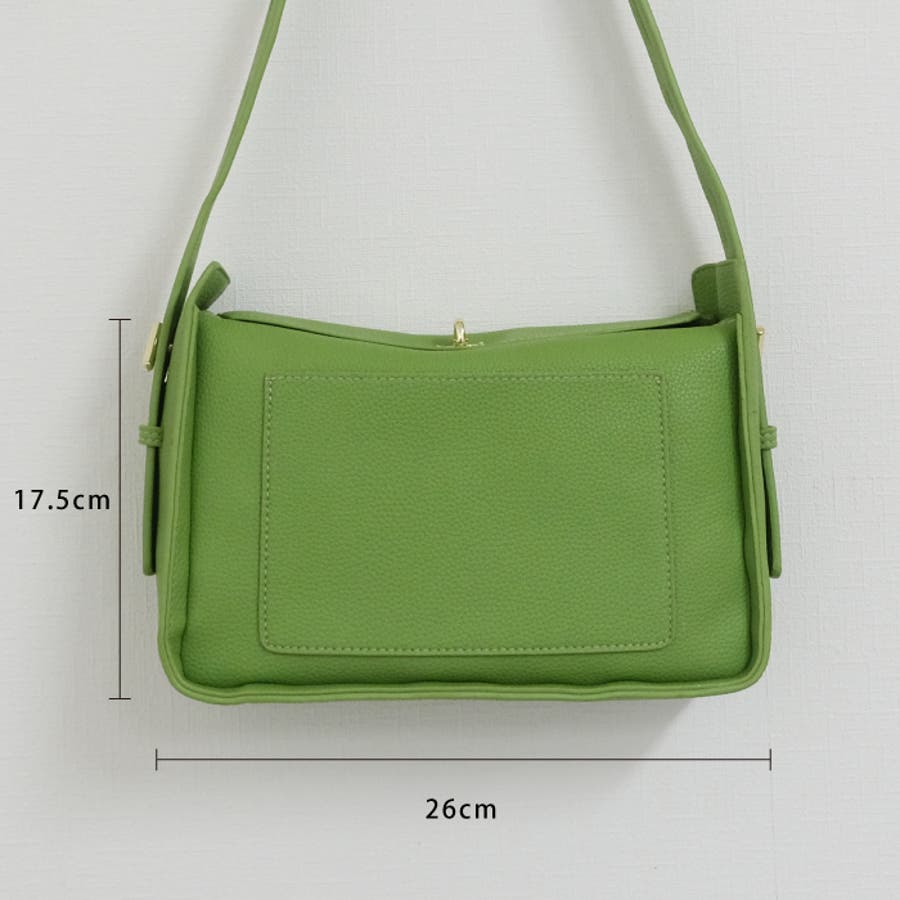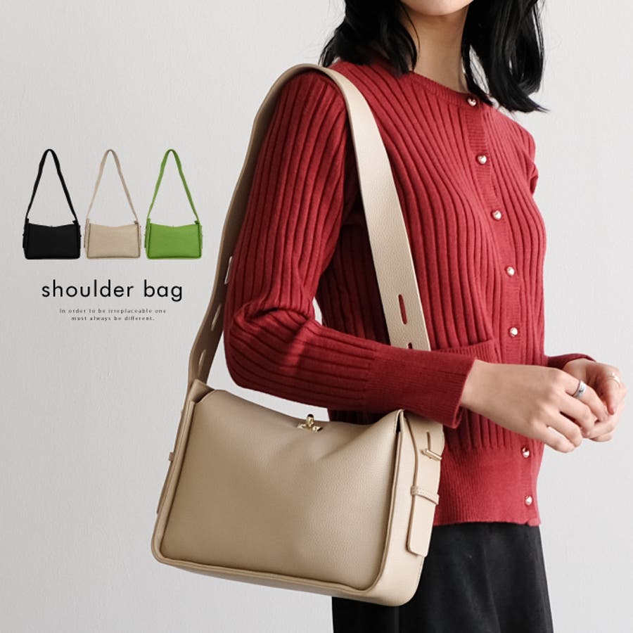やわらかなフェイクレザーでこなれ感のあるショルダーバッグ。背面にはオープンポケット付きで、スマホもさっと収納できます。 ショルダーストラップは、金具を留めてお好きな長さで使えます。カジュアルから、フェミニンスタイルまで幅広く使えるアイテムです。