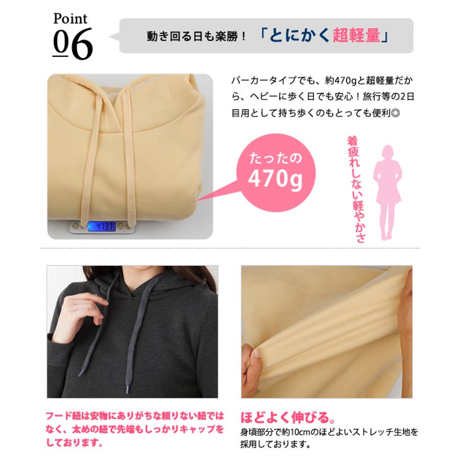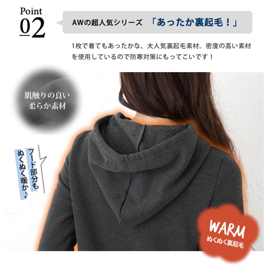 裏起毛で暖かいです。さん (50代以上 / 女性 / 身長150~155cm )購入アイテム:サイズ パーカータイプ:Mカラー チャコールいつものトップスサイズ:Sサイズ感:ぴったり - 思ったより細身