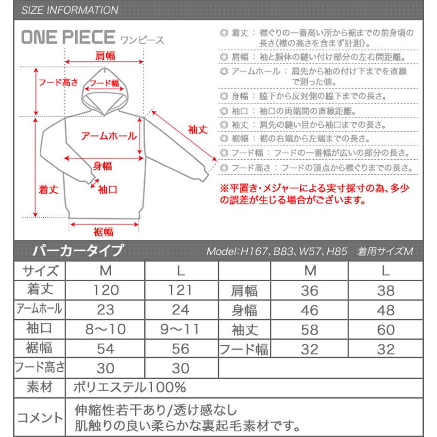 | サイズ | パーカータイプ:M / パーカータイプ:L / トレーナータイプ:M / トレーナータイプ:L |