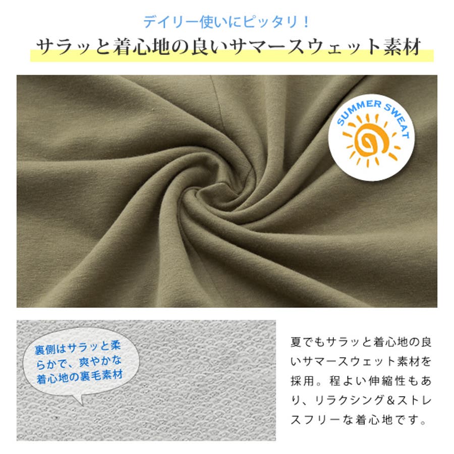 サラッと着心地のよい薄手のサマースウェット素材です。