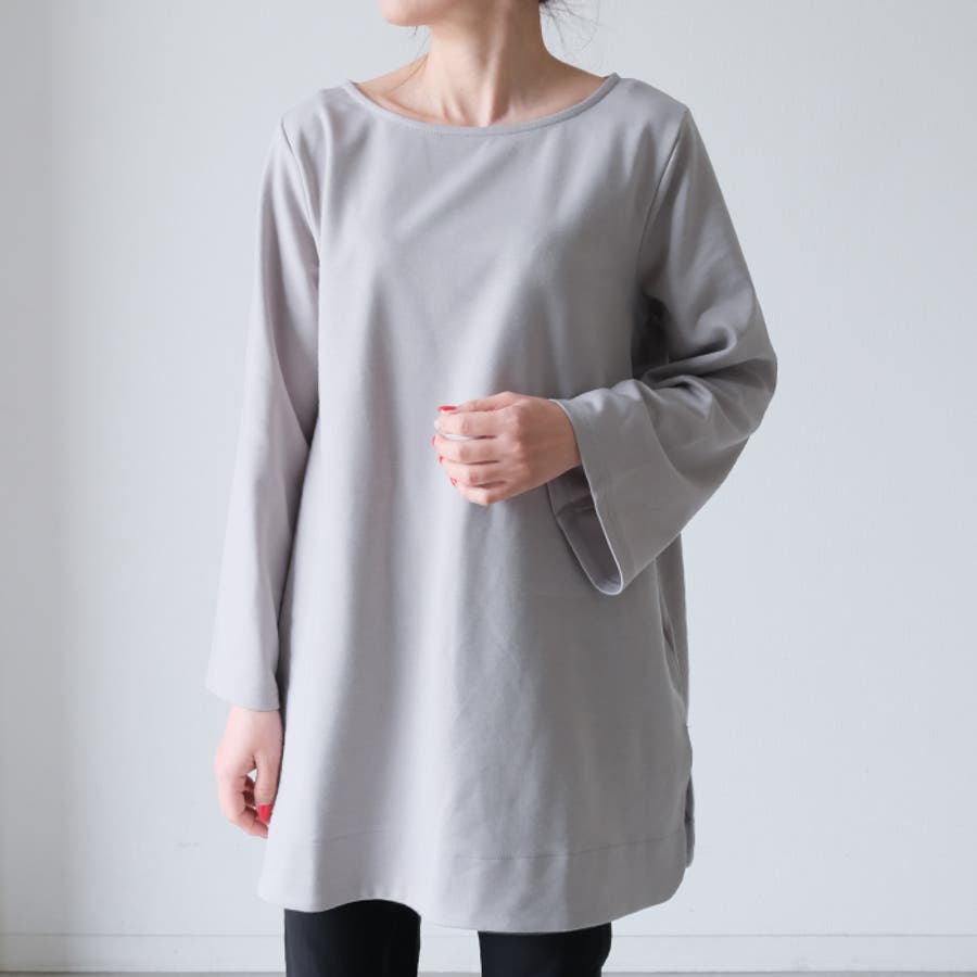 盛り袖 ゆったり フレア ボートネック サイドスリット