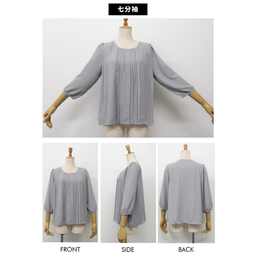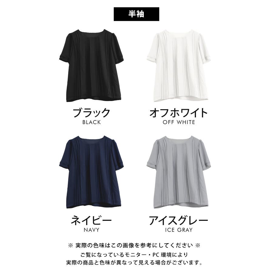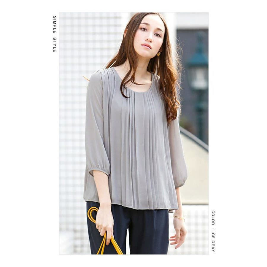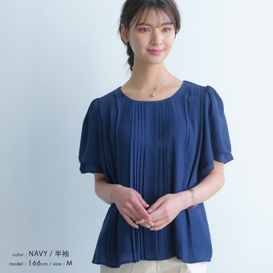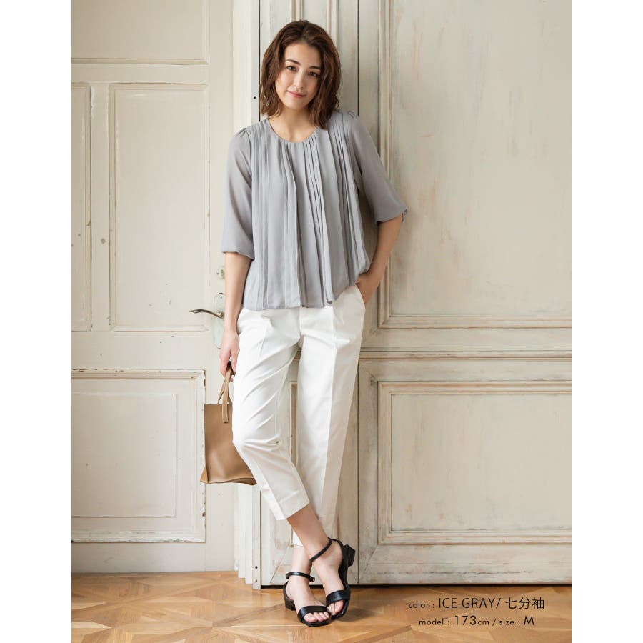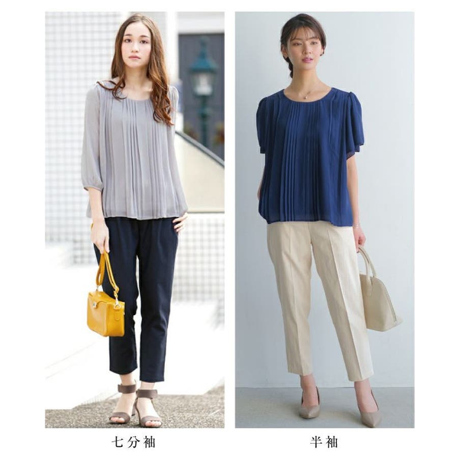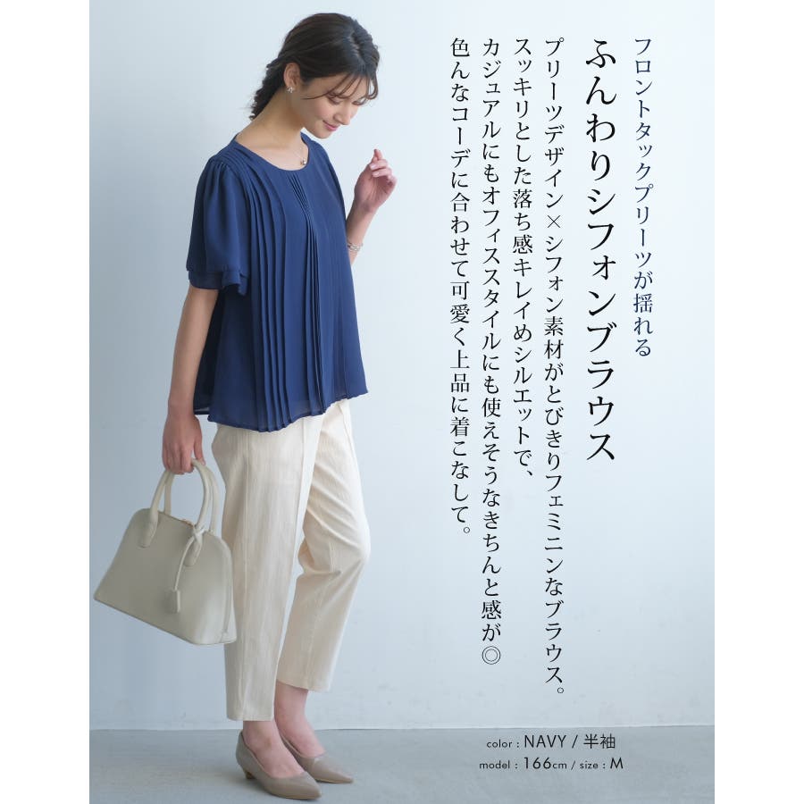 半袖or7分袖から選べる!フロントタックプリーツが揺れるふんわりシフォンブラウス
