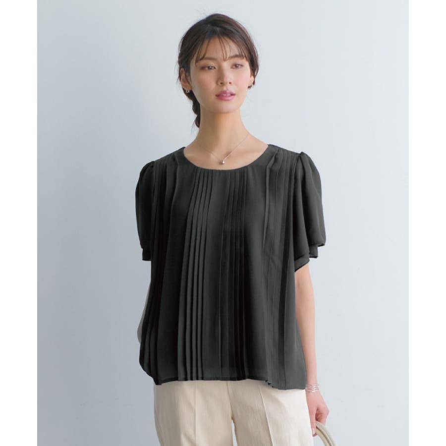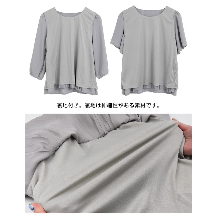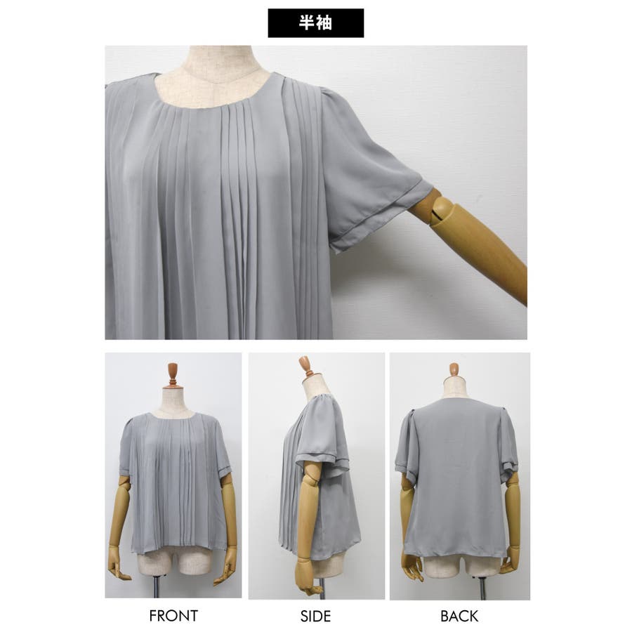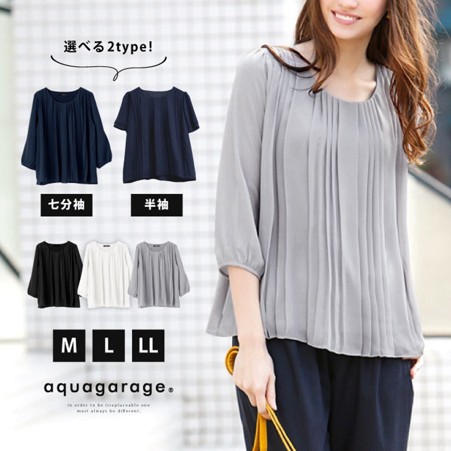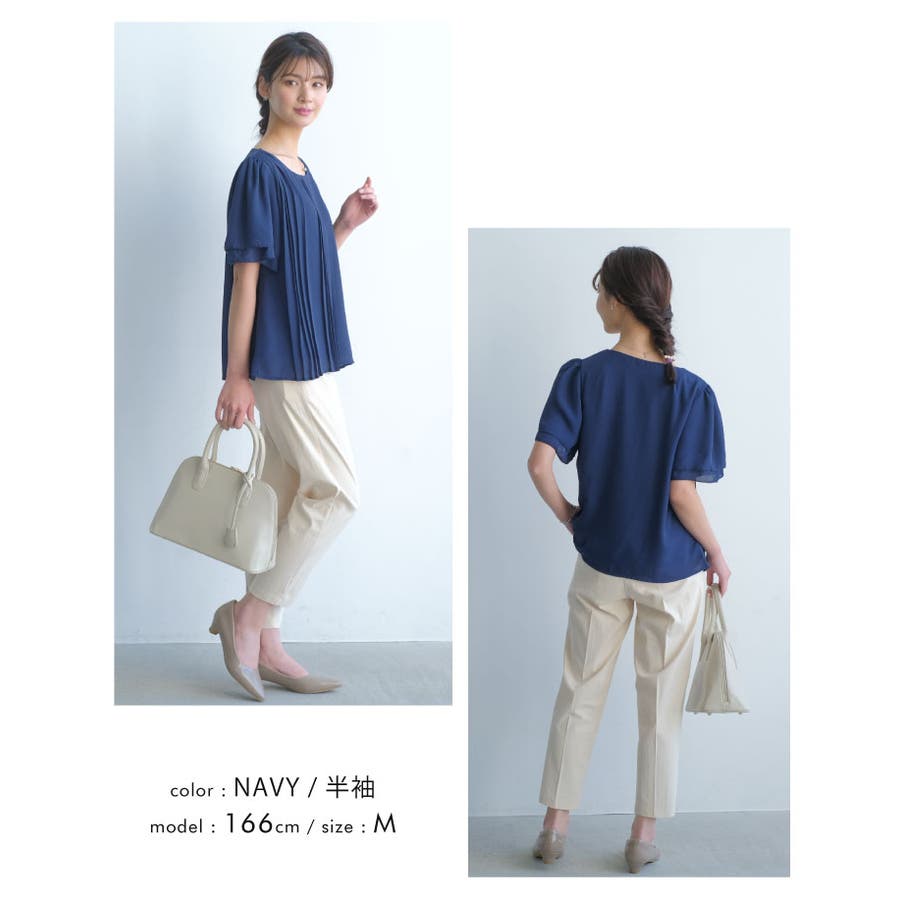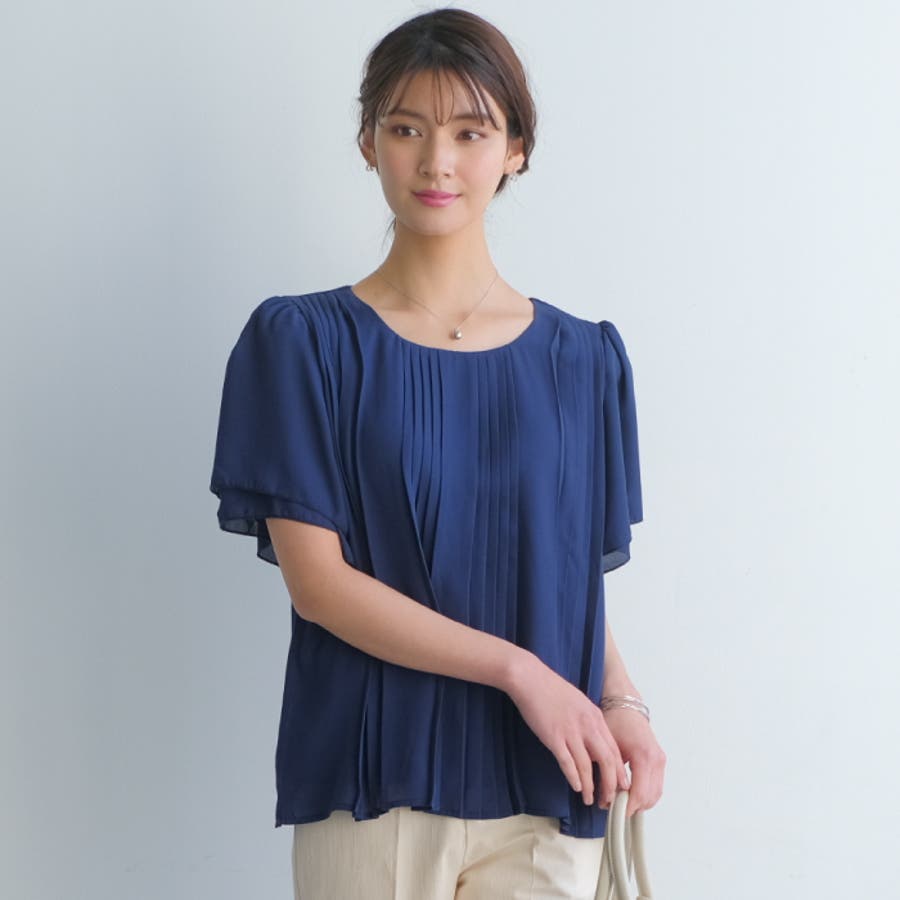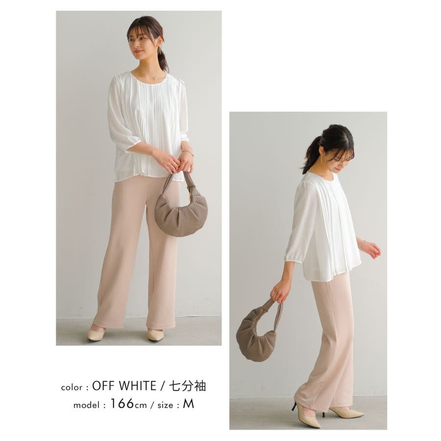 半袖or7分袖から選べる!フロントタックプリーツが揺れるふんわりシフォンブラウス