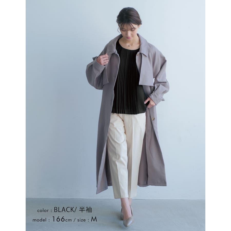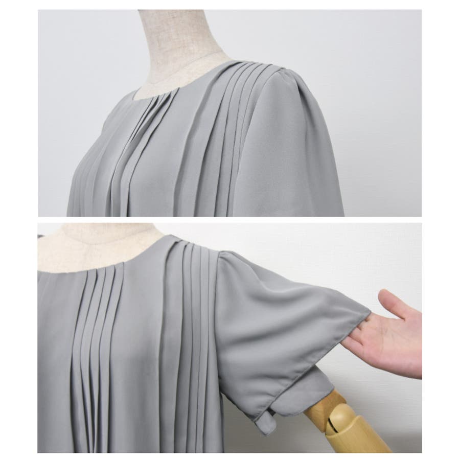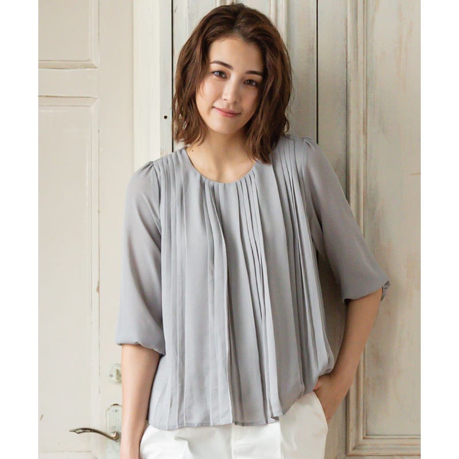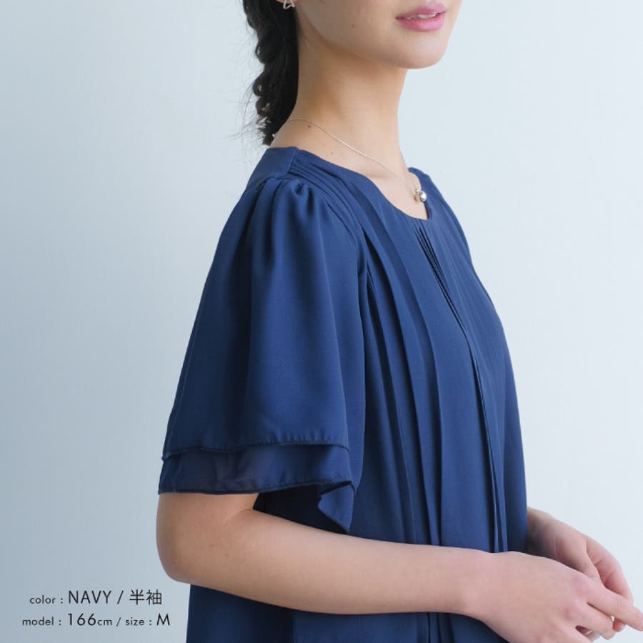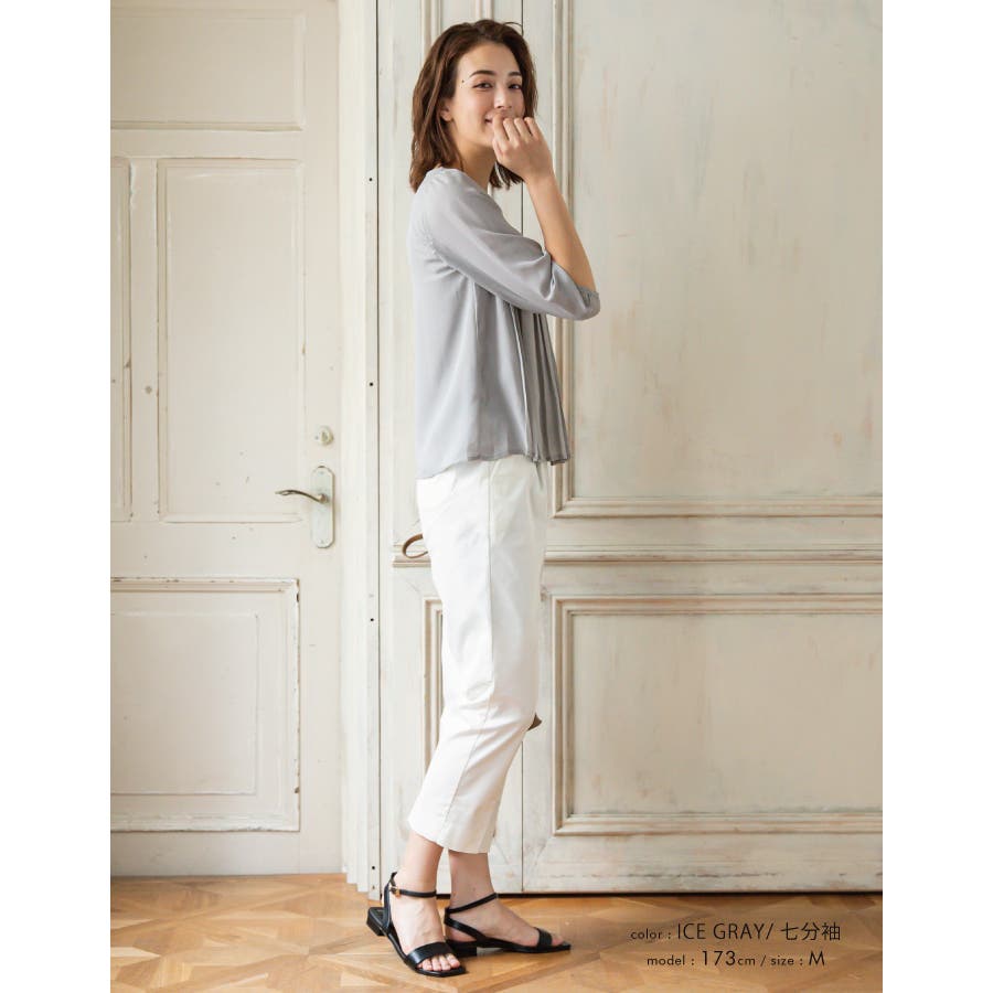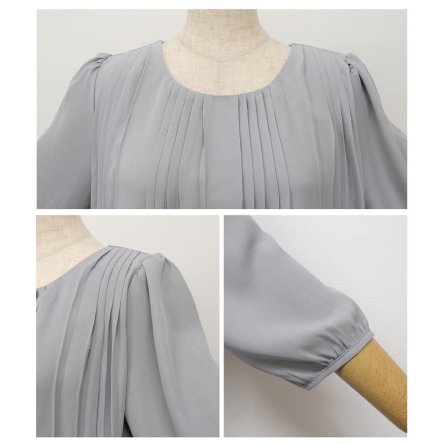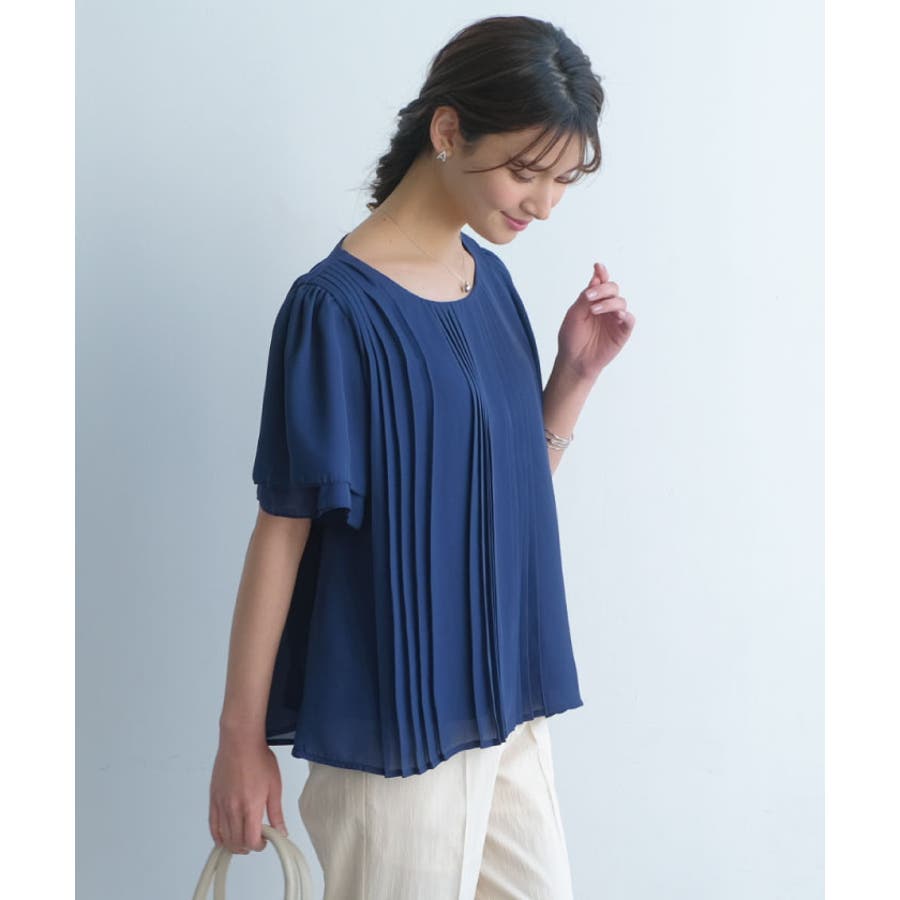 半袖or7分袖から選べる!フロントタックプリーツが揺れるふんわりシフォンブラウス