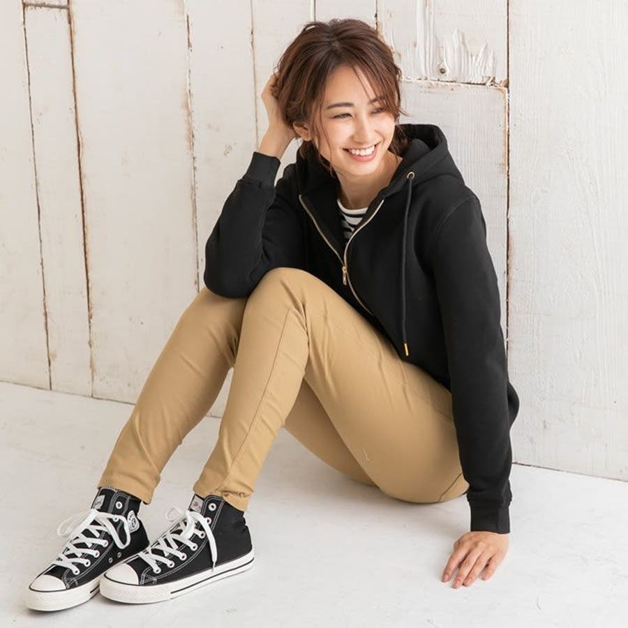 投稿日:2020.11.24裏起毛の割には生地が薄く感じましたが、すっきり履けて良かったです。ストレッチが効いているので腰回りも楽々で、ボタンとファスナーを閉じたままでも脱ぎ履きが出来ます。楽々過ぎて下がりやすいので、ベルトつけて履いています。スパッツ感覚で履けちゃうパンツです。
