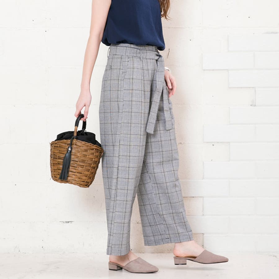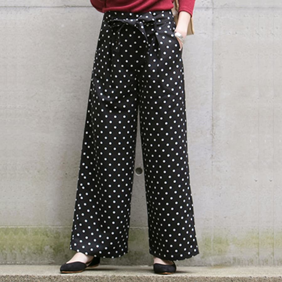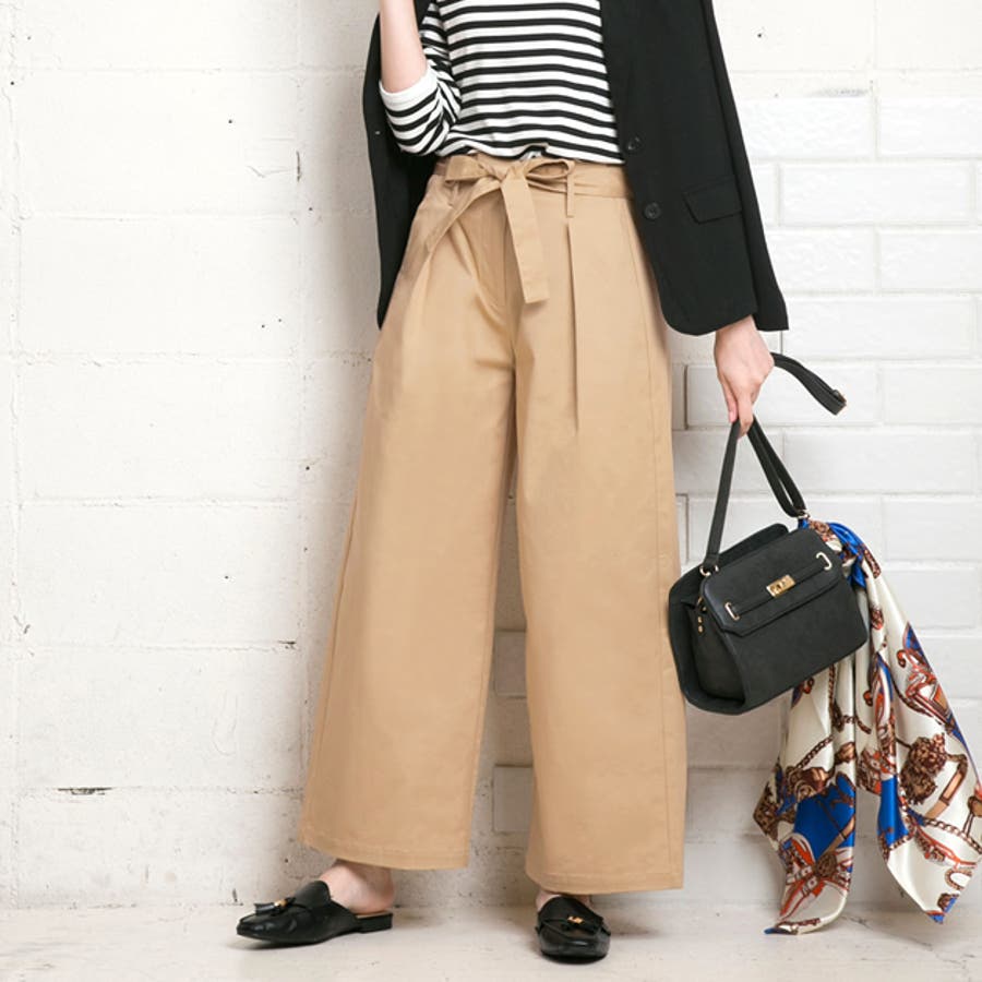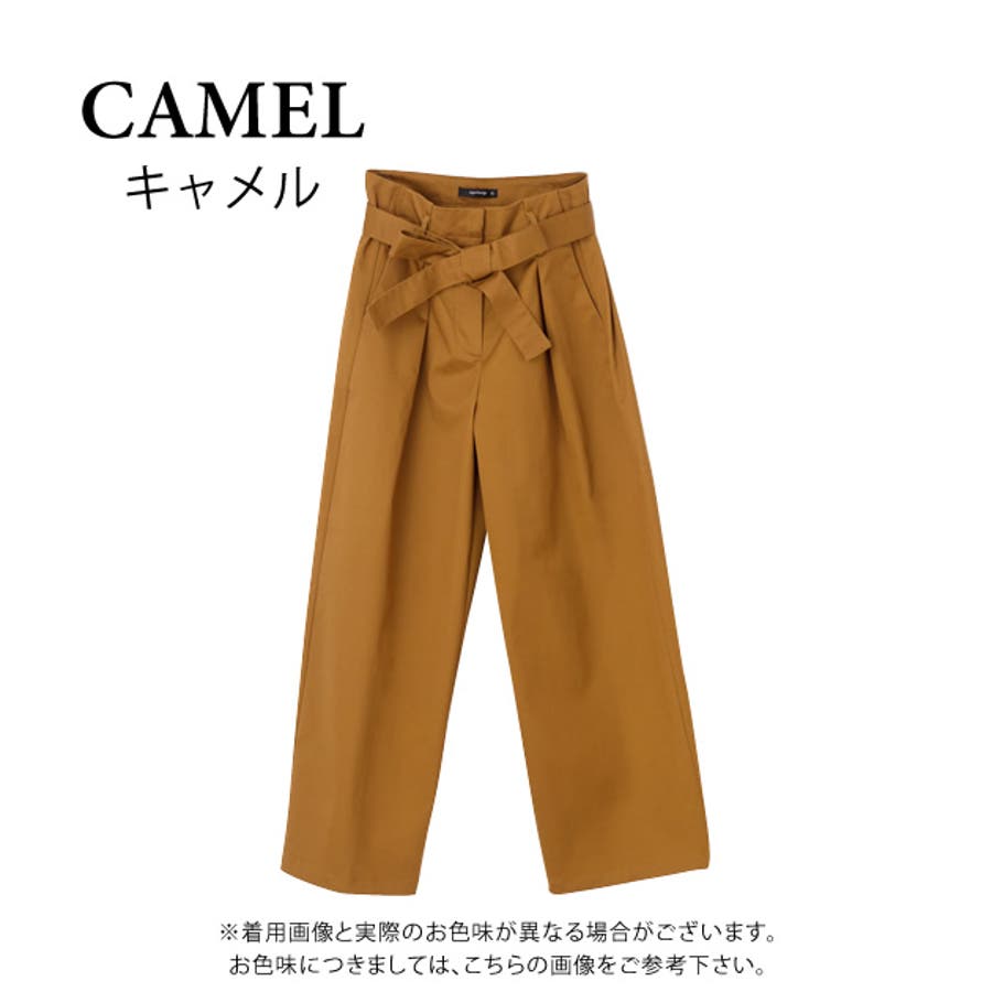 リボンベルト付き美脚 ワイドパンツ ボトムス