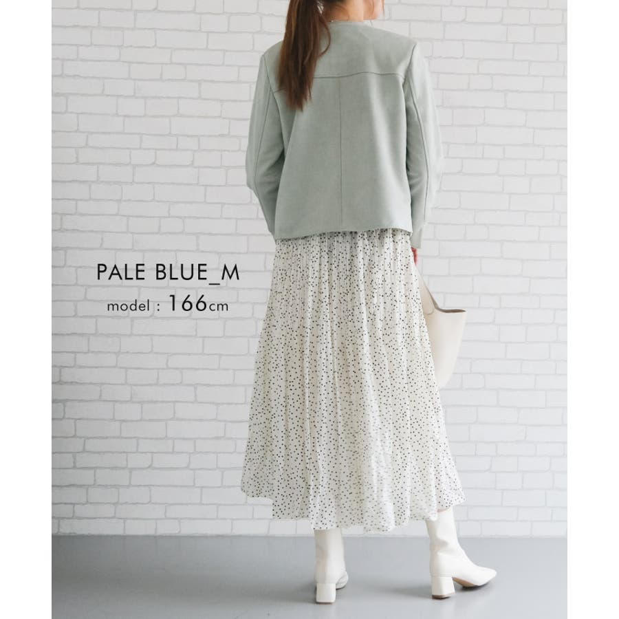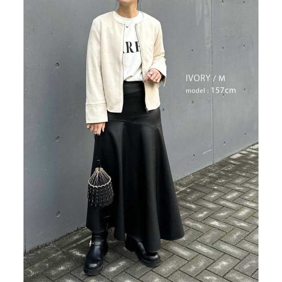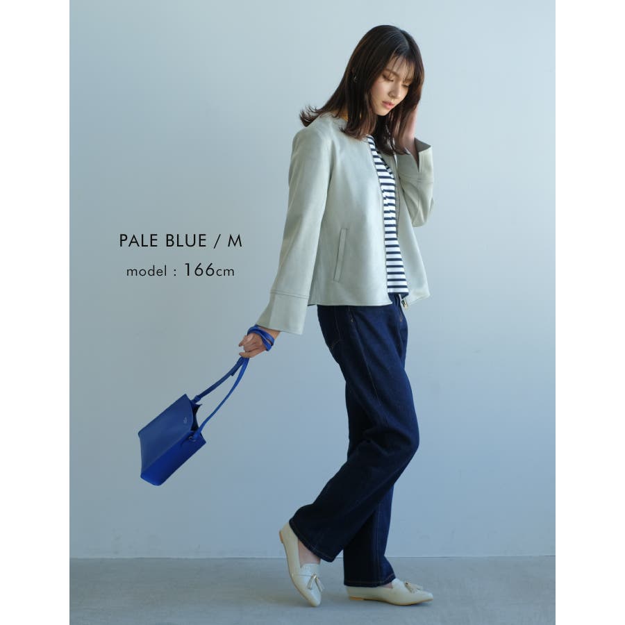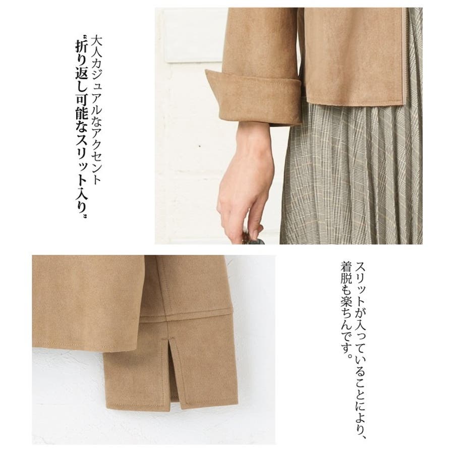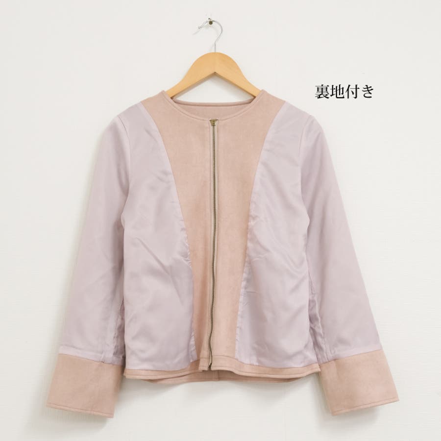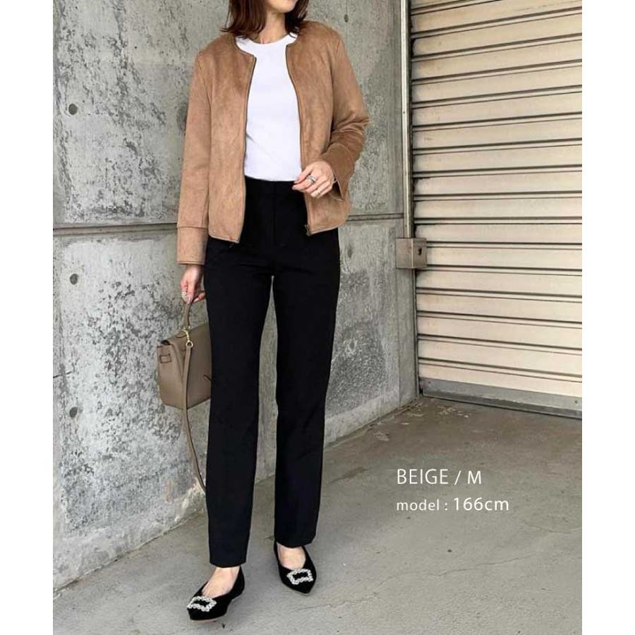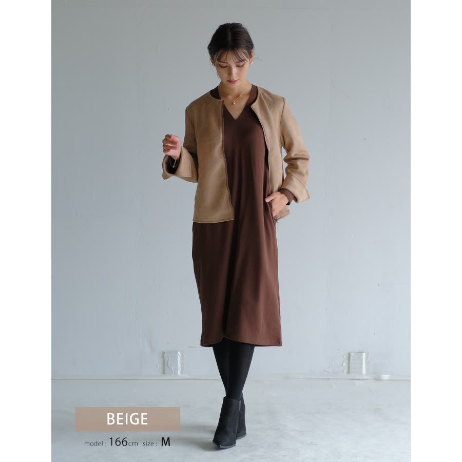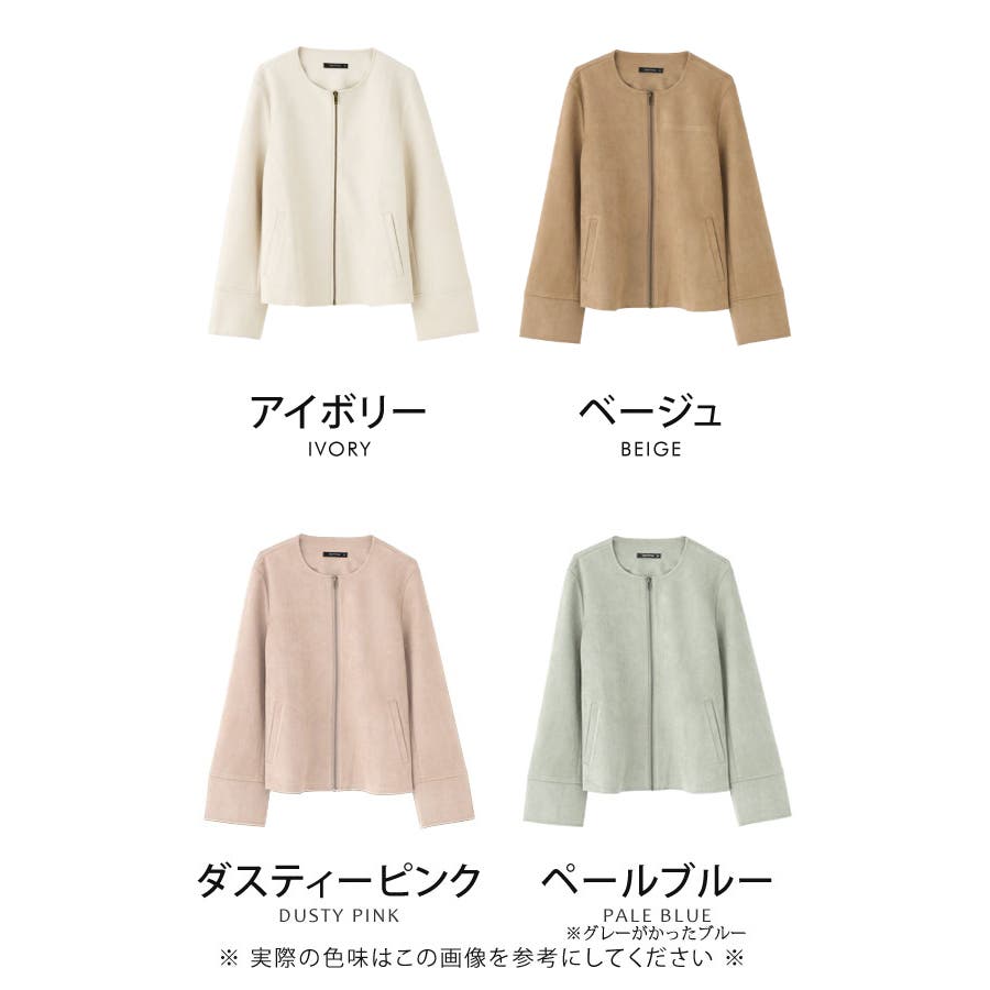シンプルさが印象的!スエードタッチノーカラージャケット