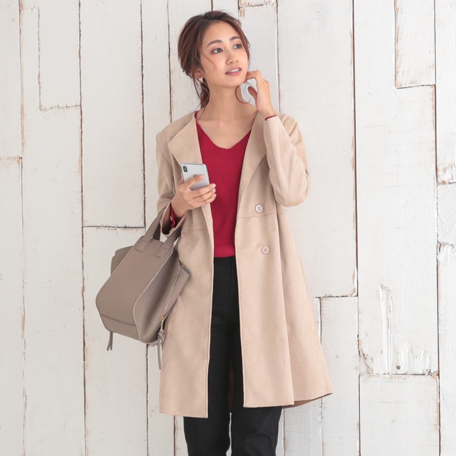 ・手触りのよいスエード調素材のボンディングコート