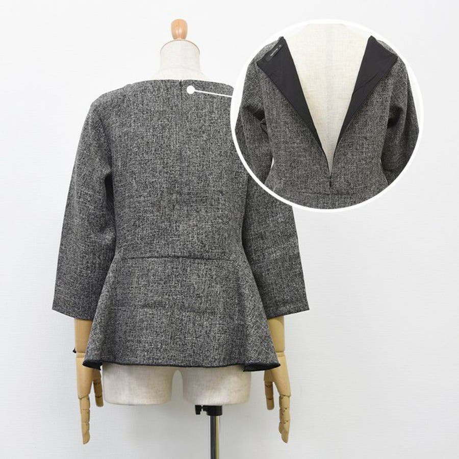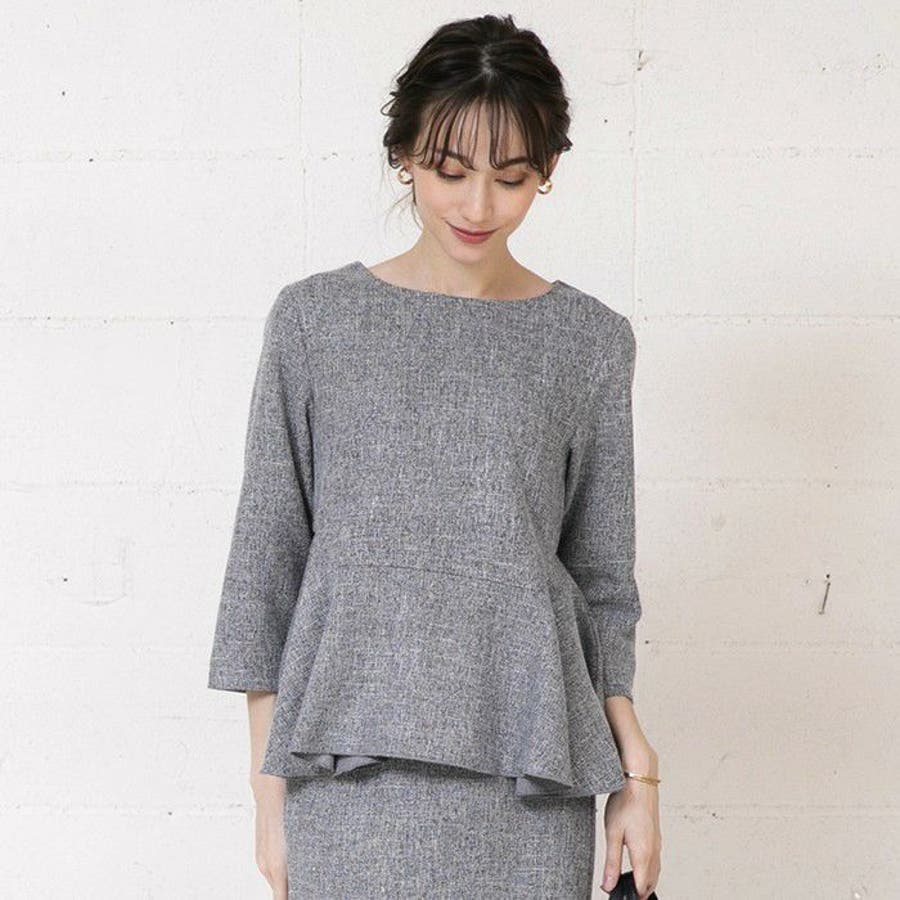 オフィススタイルにも使えるきれいめツイードペプラムトップス