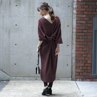 バックデザインが特徴的、後ろねじりデザインワンピース。