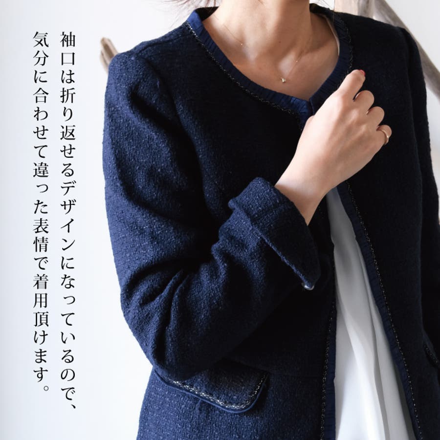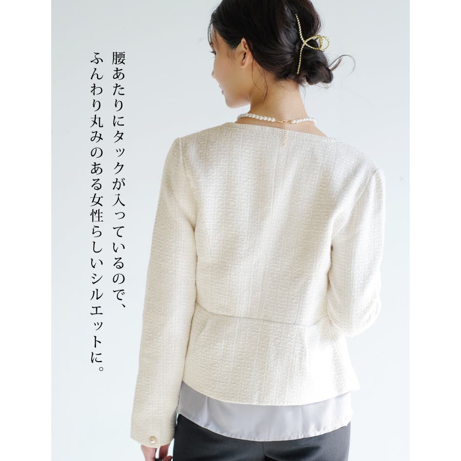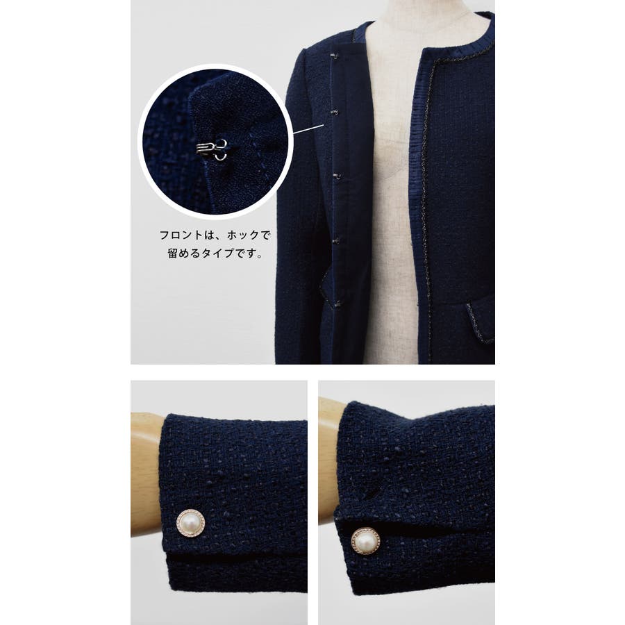 ジャケット ノーカラー ツイード レディース 春 秋 冬 長袖 フロントホック カラーレス ノーラペル ラペルレス ライトアウター アウター 羽織り シンプル 上品 ビジネス オフィス フォーマル 結婚式 披露宴 二次会 謝恩会 演奏会 入園式 卒園式 入学式 卒業式 演奏会 七五三 お宮参り 発表会 お受験 成人式 お呼ばれ セレモニー おしゃれ スーツ ママ 母 ママスーツ ツィード