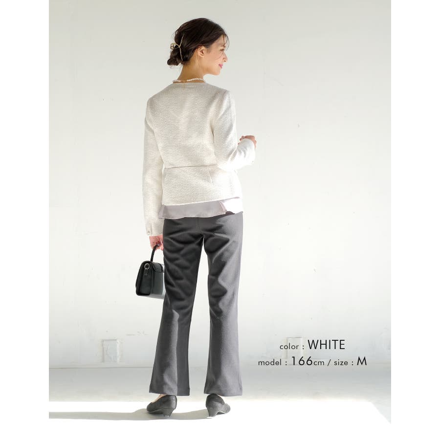 凹凸感のあるスラブ糸を編み込んだ上品魅せツイードジャケット。