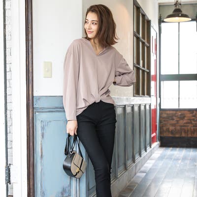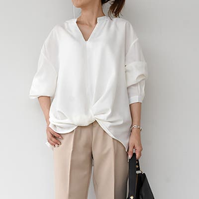 そのまま着るだけでこなれた印象に!裾ツイストスキッパーブラウス