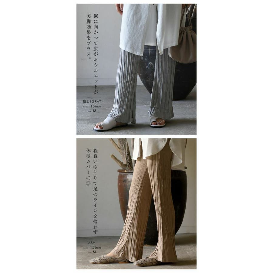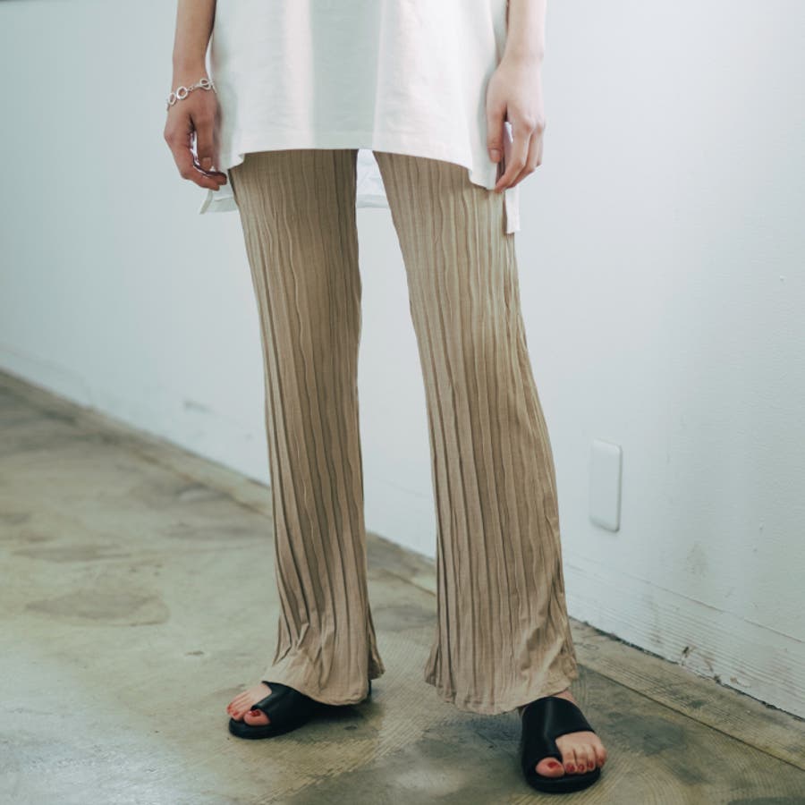 動くたびに表情豊かに揺れる変形プリーツが施されたイージーパンツ。