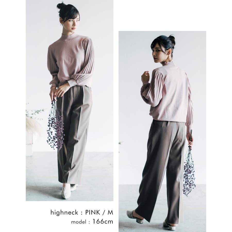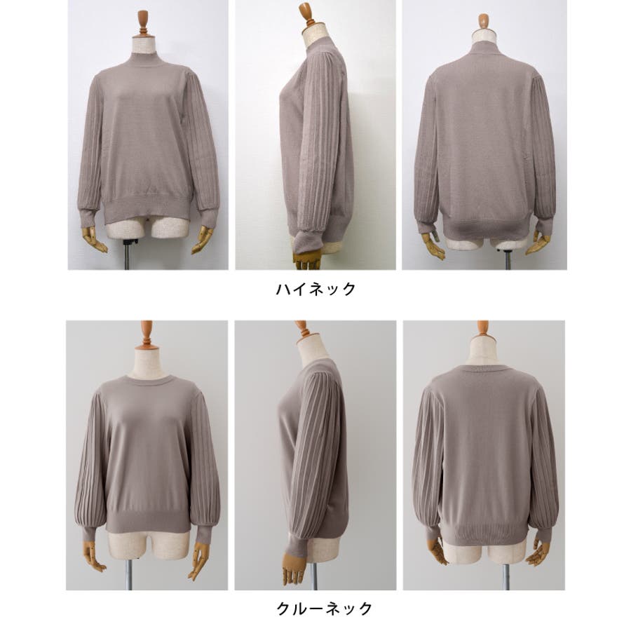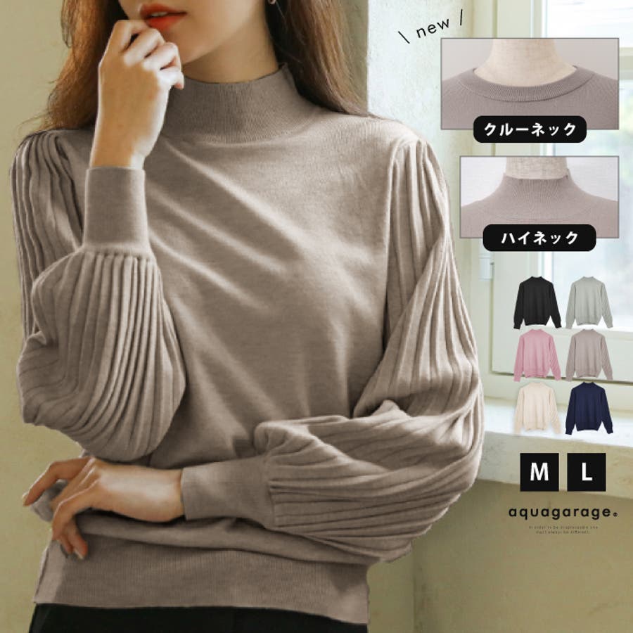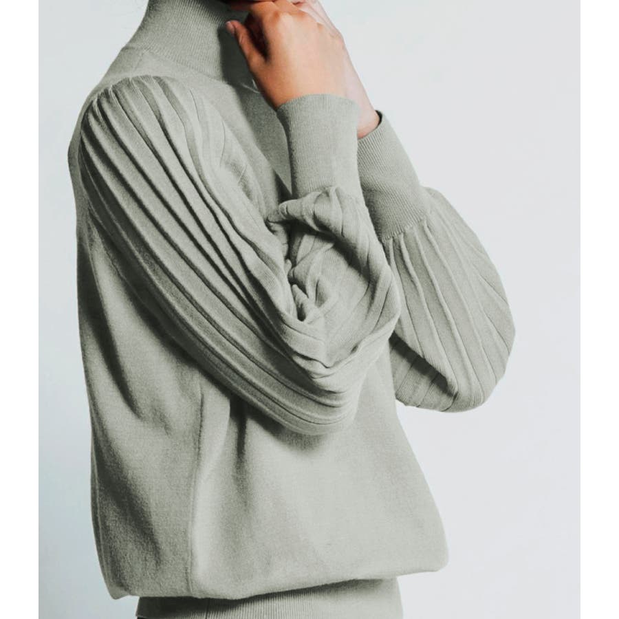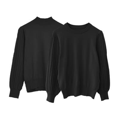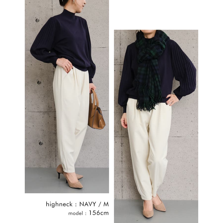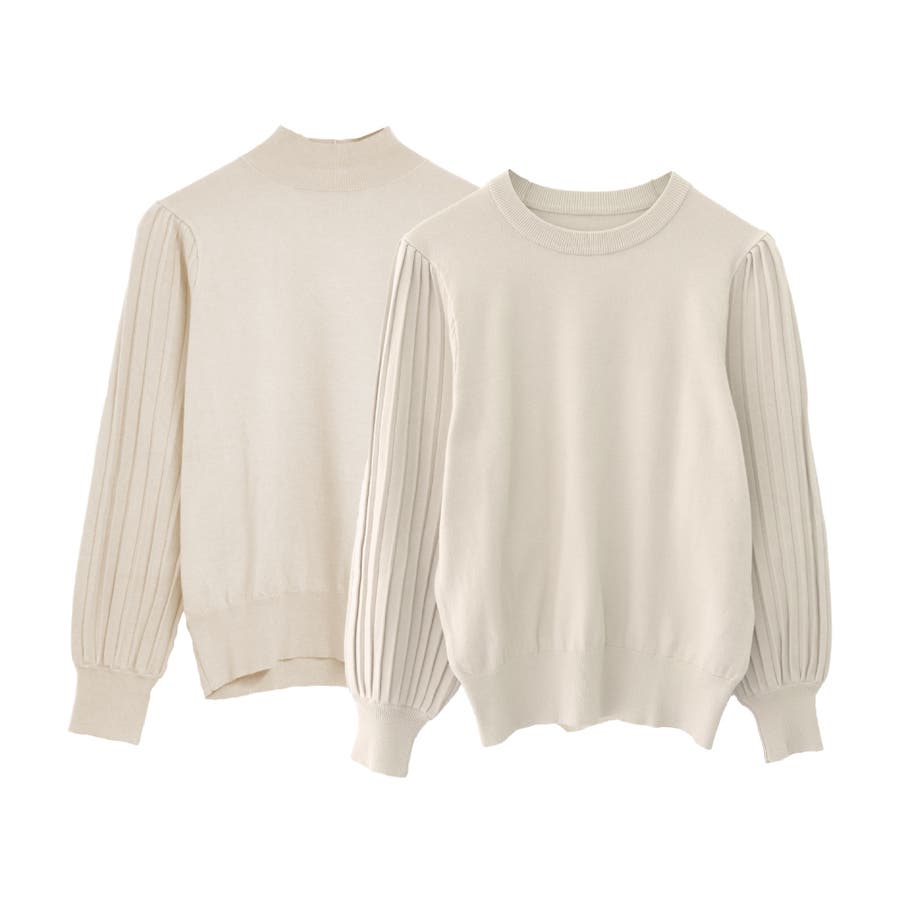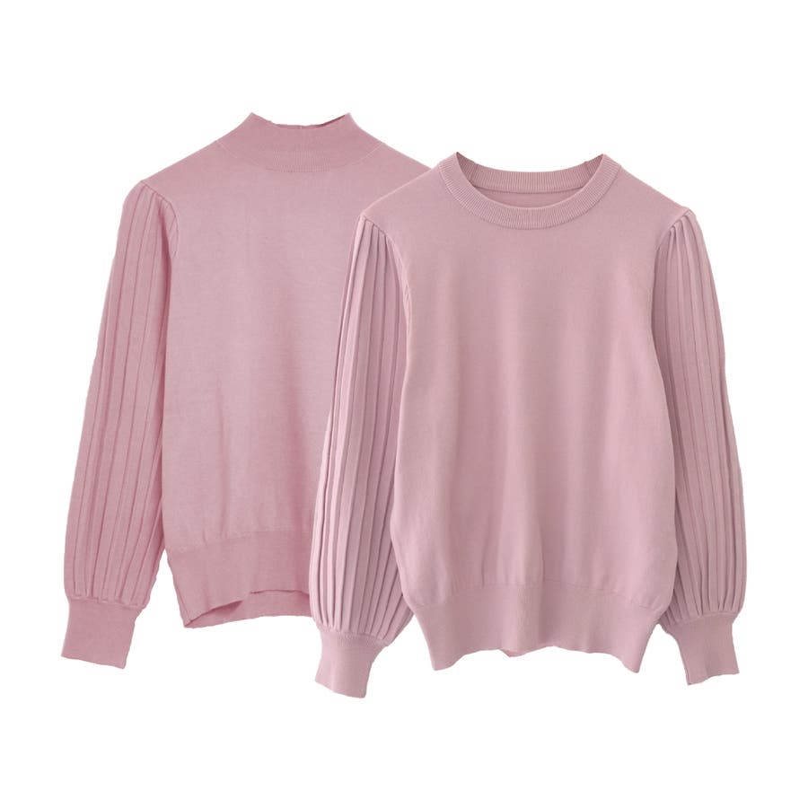 シンプルながら表情豊かに着映える!ハイネックプリーツ袖ニットトップス