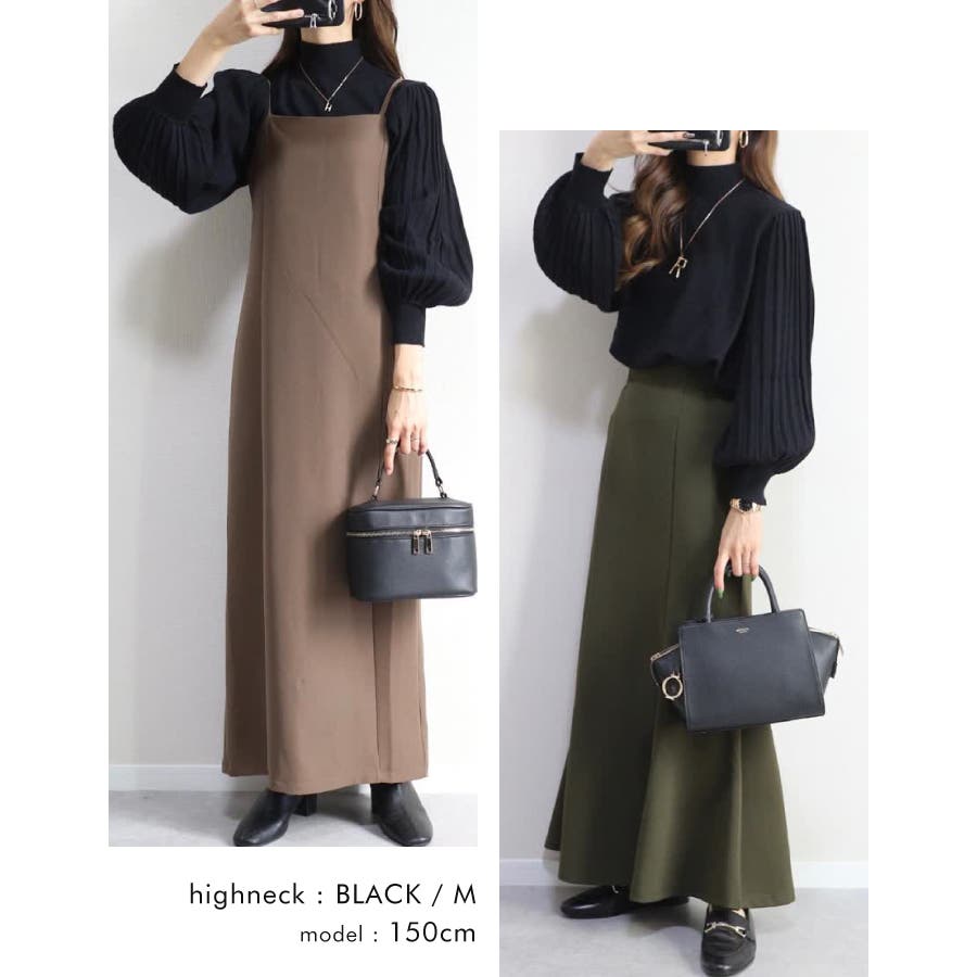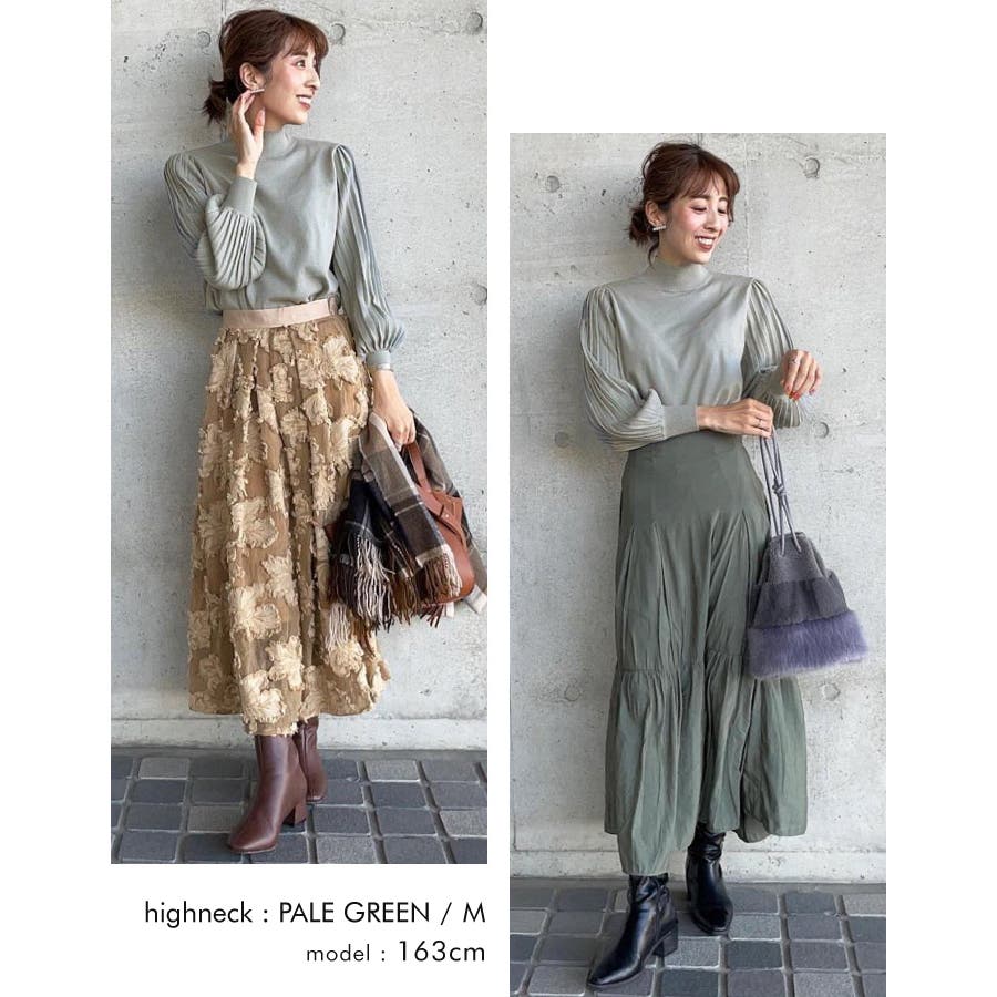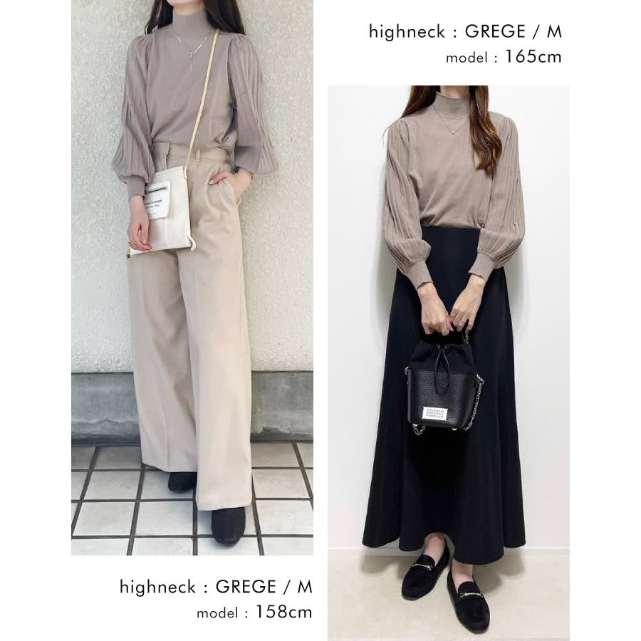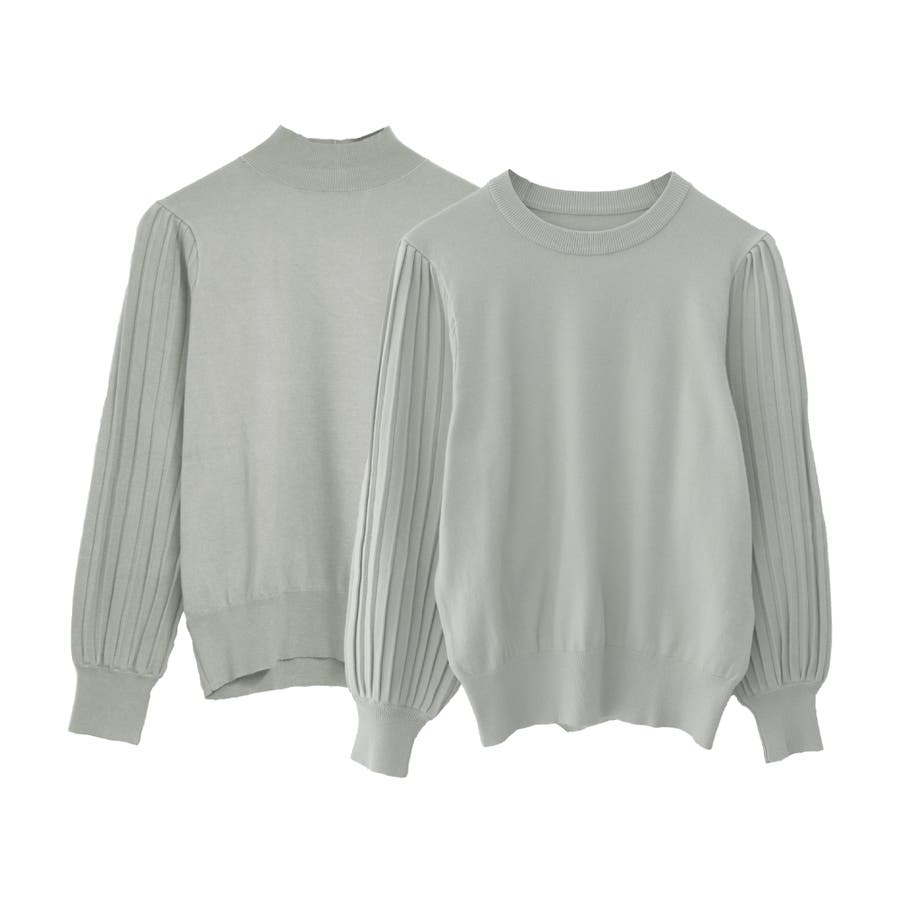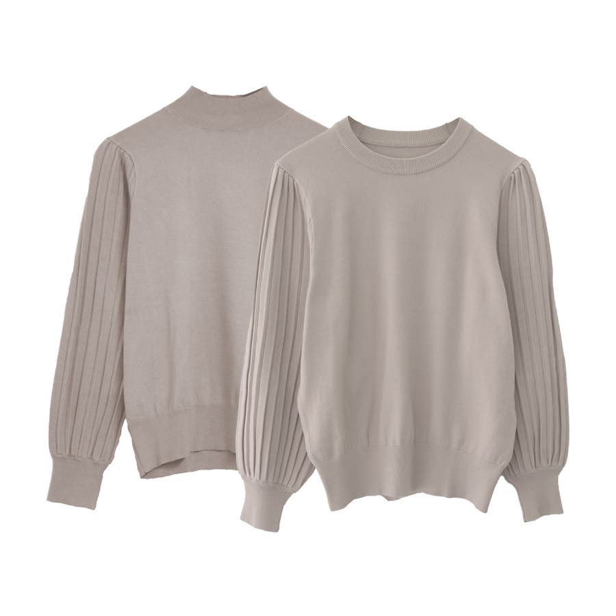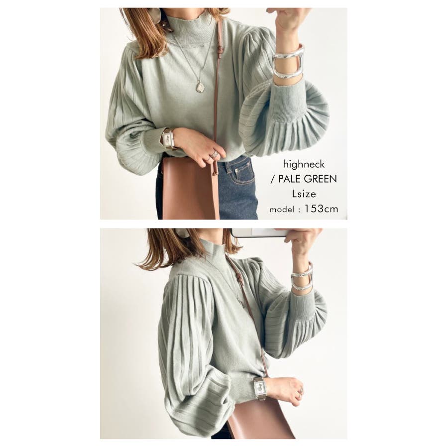 シンプルながら表情豊かに着映える!ハイネックプリーツ袖ニットトップス
